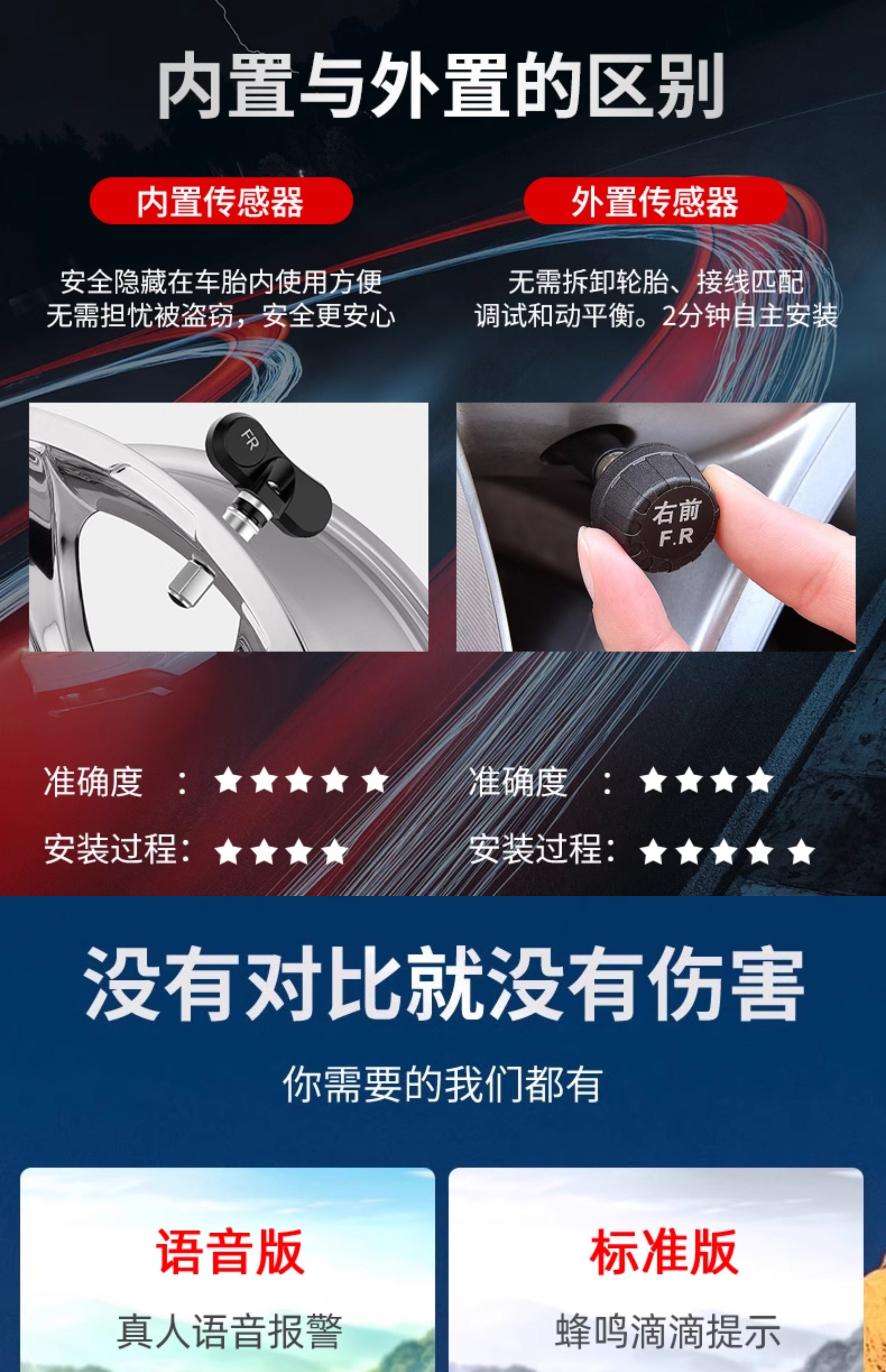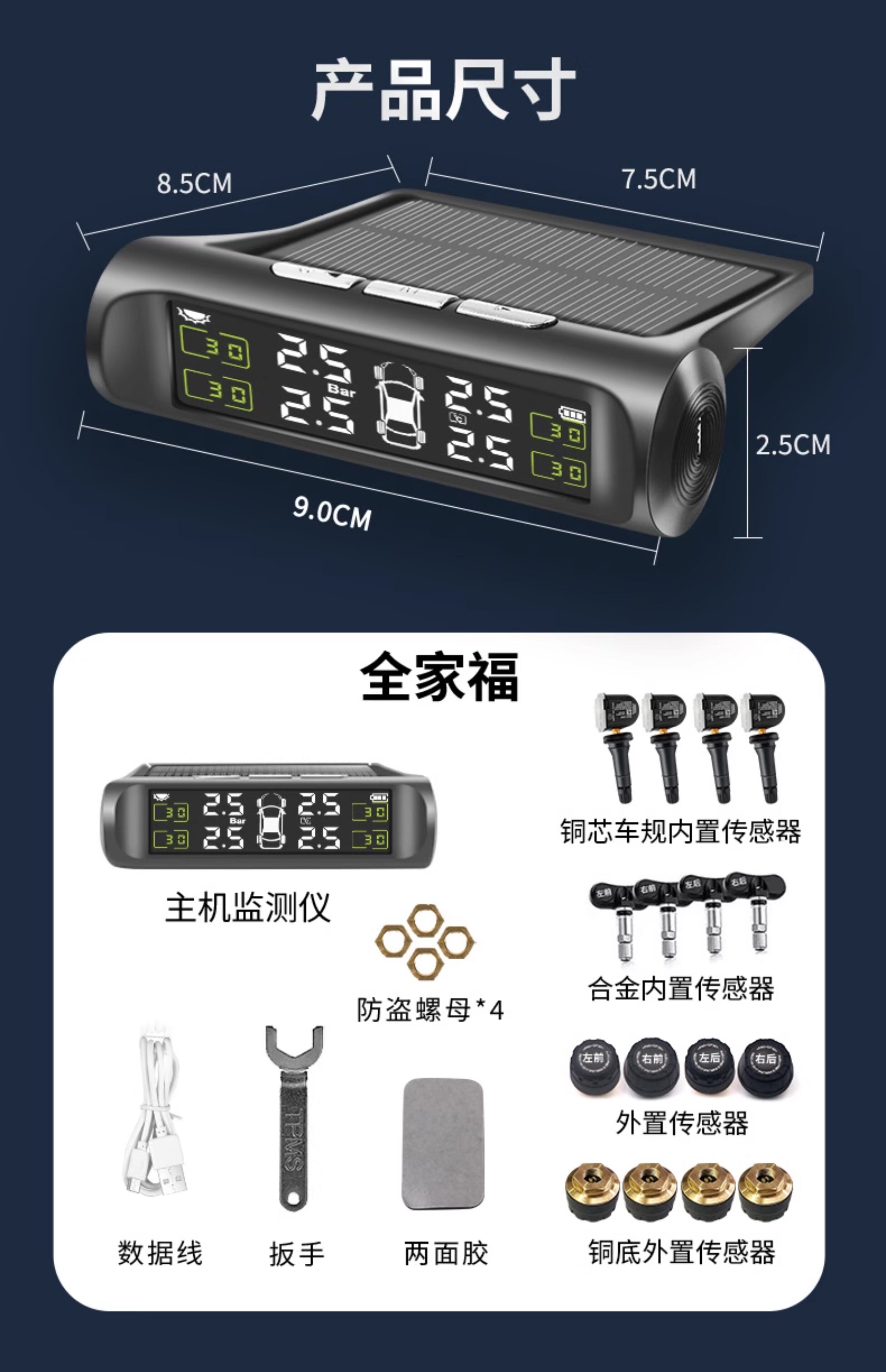 타이어 압력 모니터 태양열 타이어 압력 감지 장비 자동차 무선 내장 외부 고정밀 타이어 압력 측정기스토어 가기