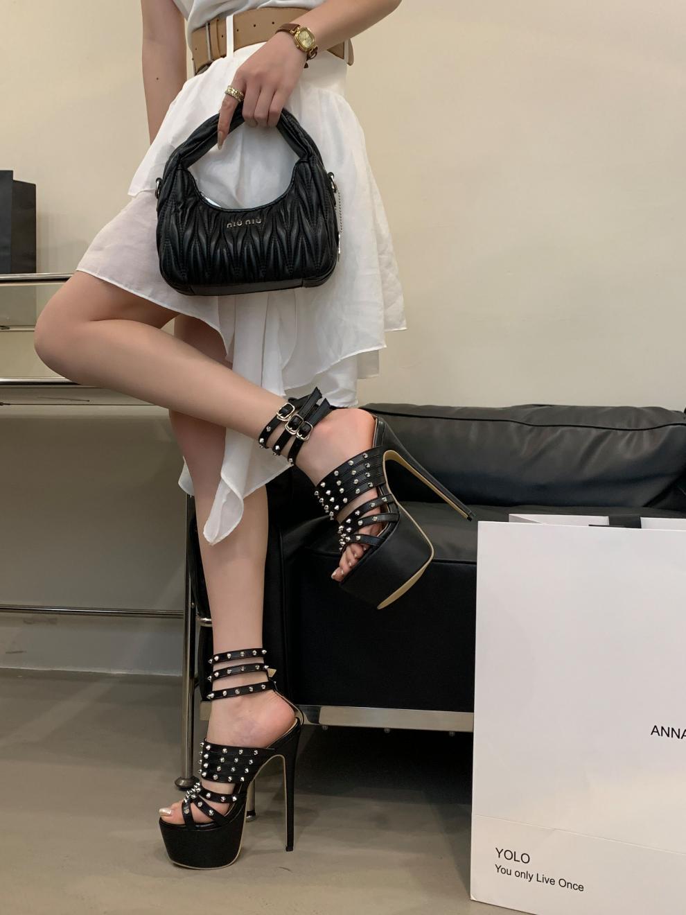 2025 새로운 유럽과 미국의 대외 무역 두꺼운 밑창 방수 플랫폼 여성 리벳 스타일 16cm 하이힐 샌들스토어 가기