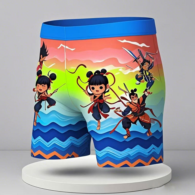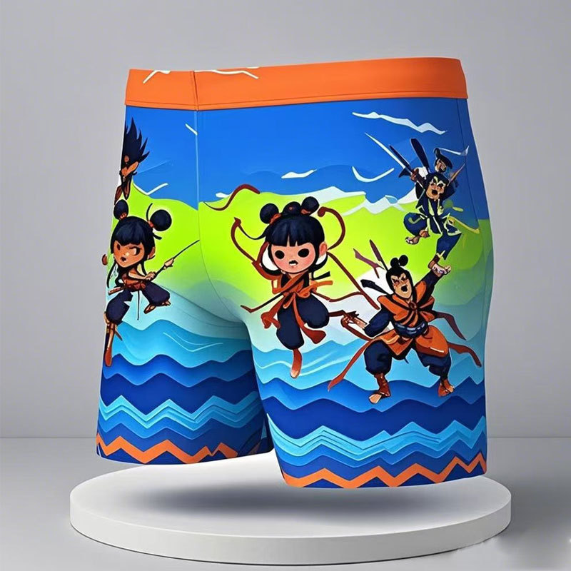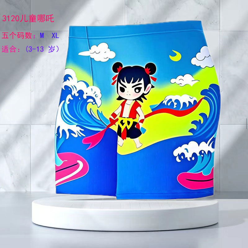 제조 업체 도매 어린이 수영 trunks 소년 학생 어린이 복서 수영 반바지 편안한 속건성 만화 수영 trunks