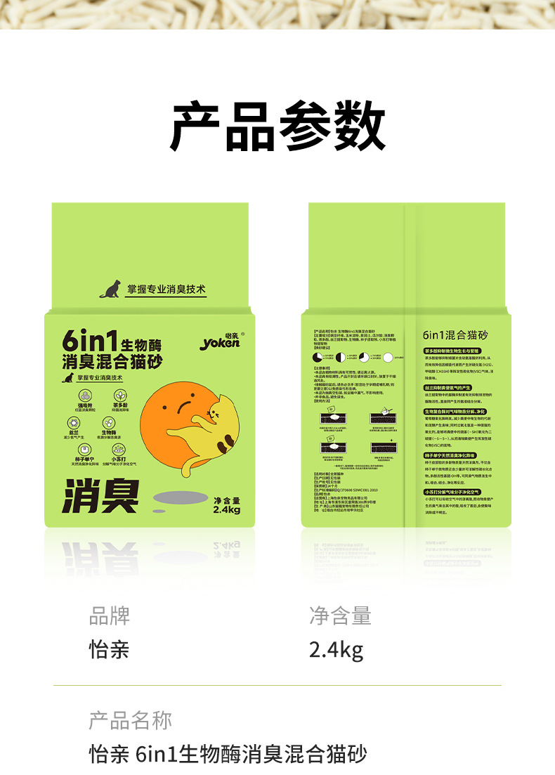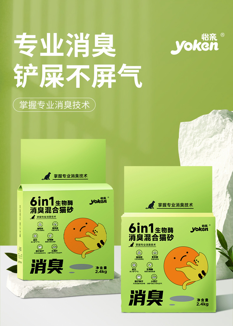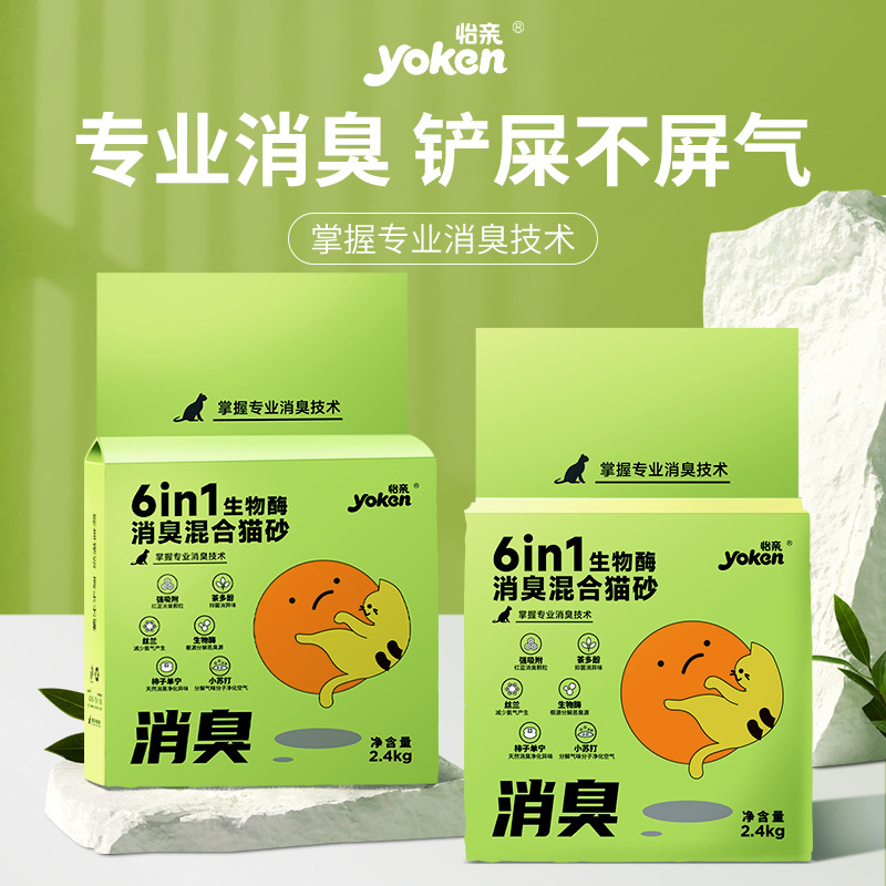 Yiqin 6-in-1 생물학적 효소 혼합 고양이 모래 탈취제 뭉침 두부 고양이 모래 벤토나이트 2.4kg 무료 배송 용품스토어 가기