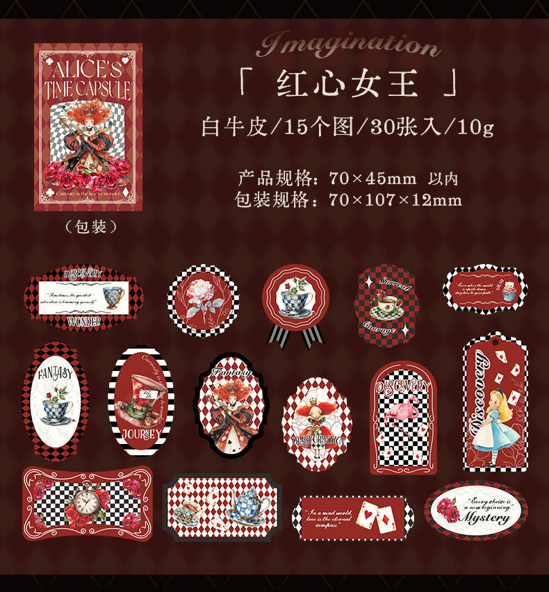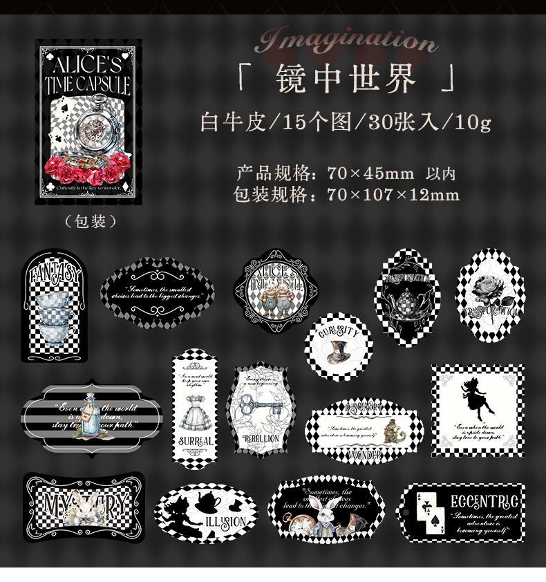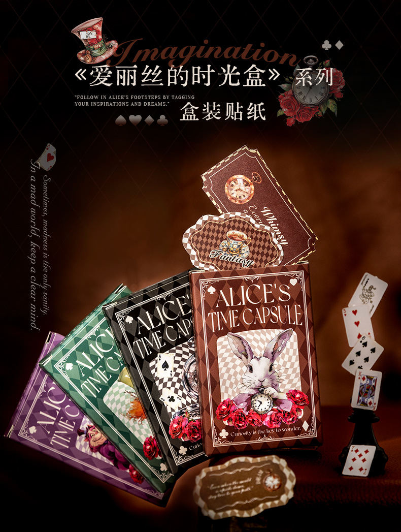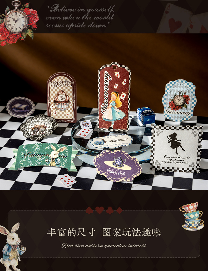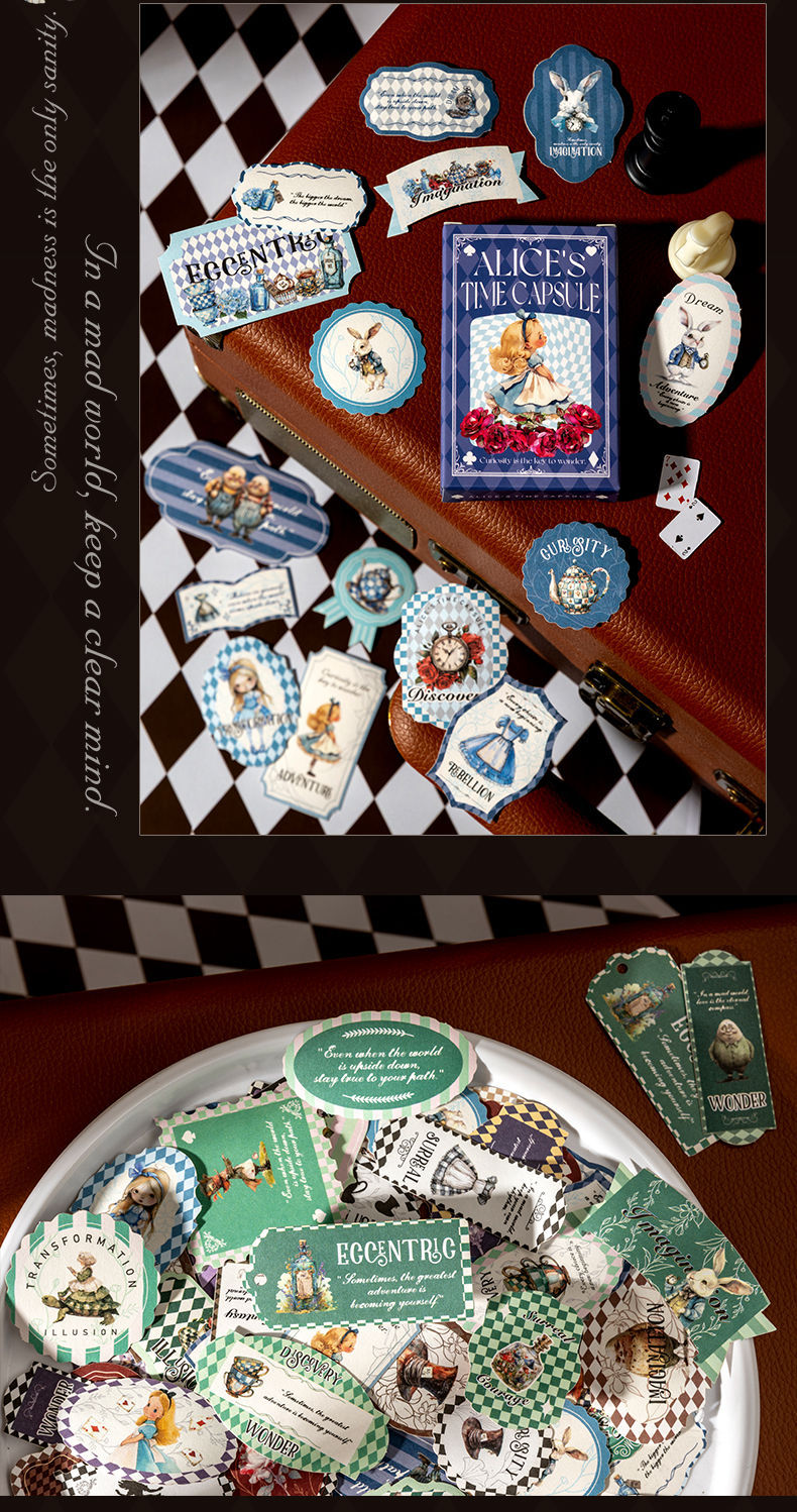 앨리스 타임 박스 스티커 빈티지 라벨 체크 무늬 패턴 콜라주 장식 손 계정 조커 소재 종이스토어 가기