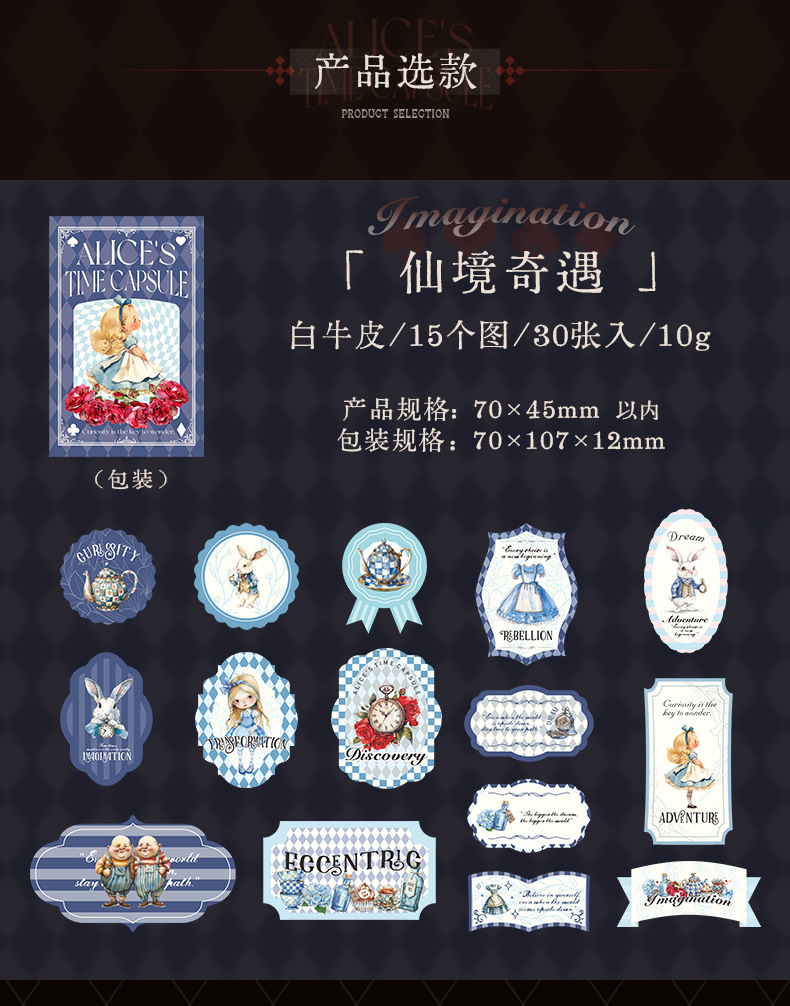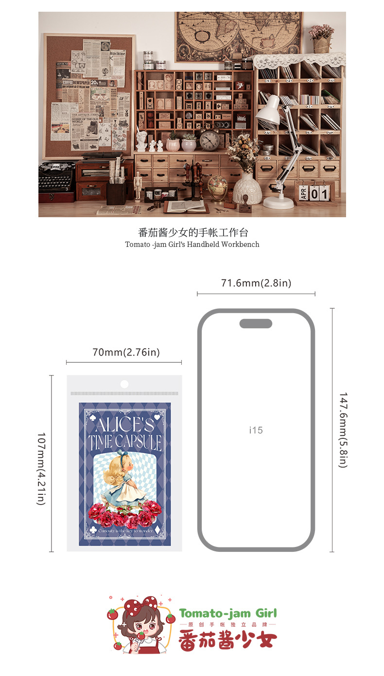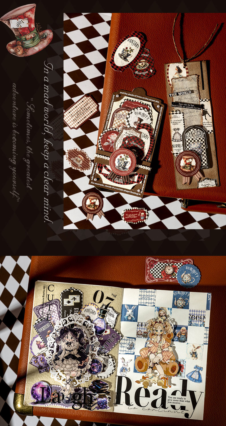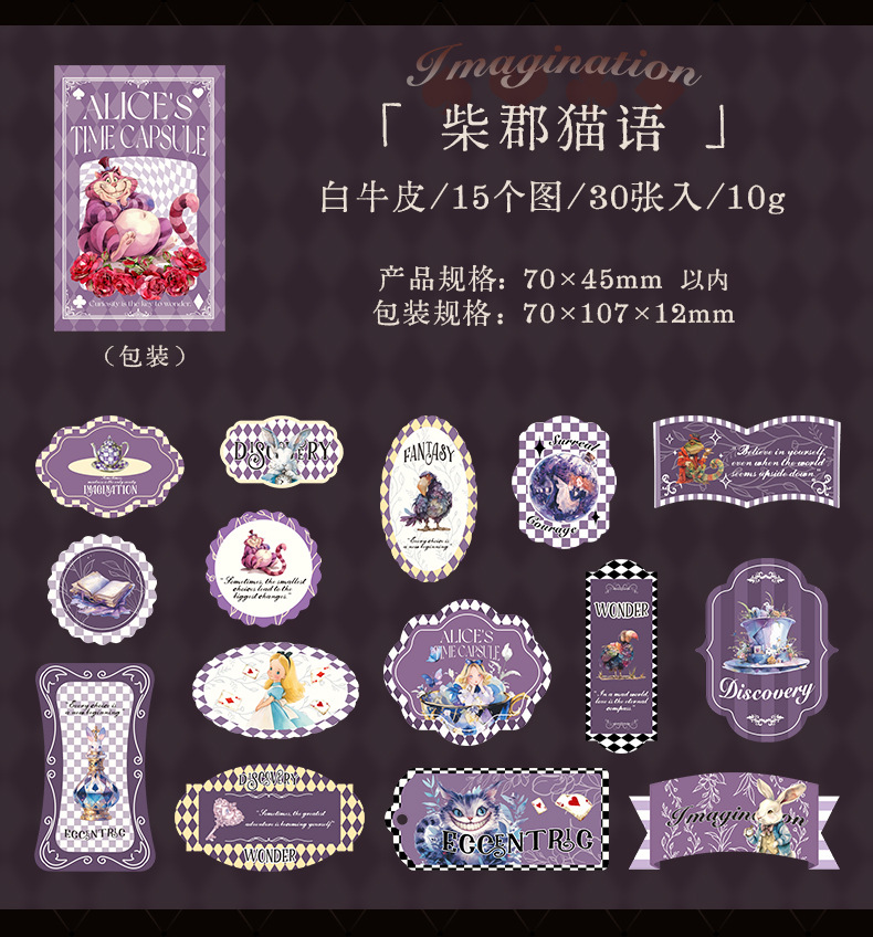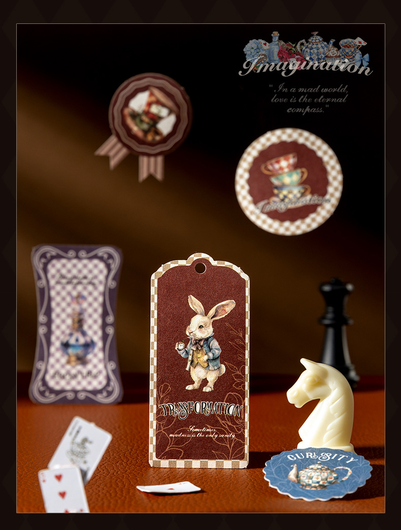 앨리스 타임 박스 스티커 빈티지 라벨 체크 무늬 패턴 콜라주 장식 손 계정 조커 소재 종이스토어 가기