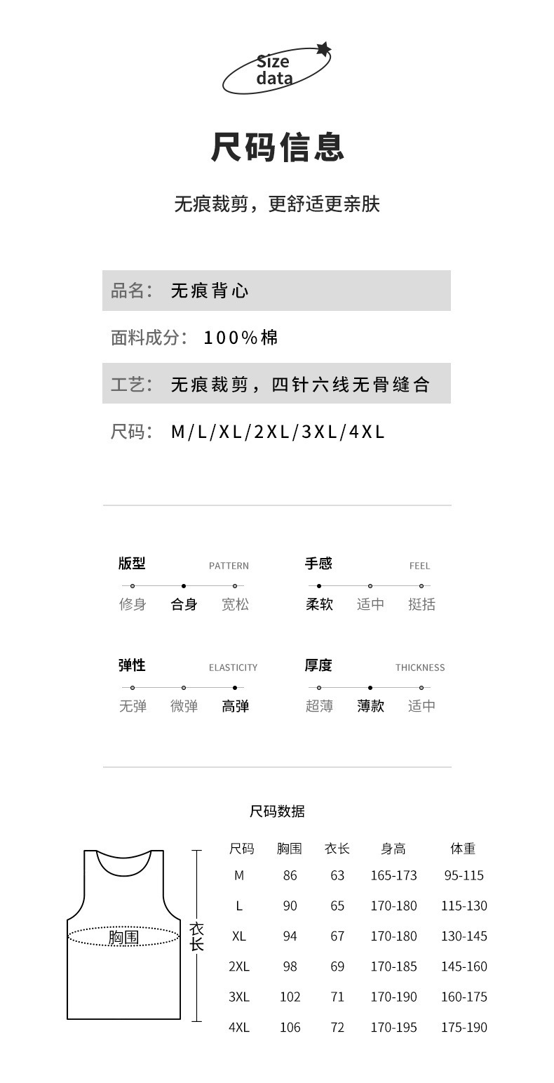 [가볍고 흔적 없음] 100% 면 남성 여름 조끼 라운드 넥 스포츠 베이스 민소매 와이드 숄더 슬림 피트 언더 셔츠