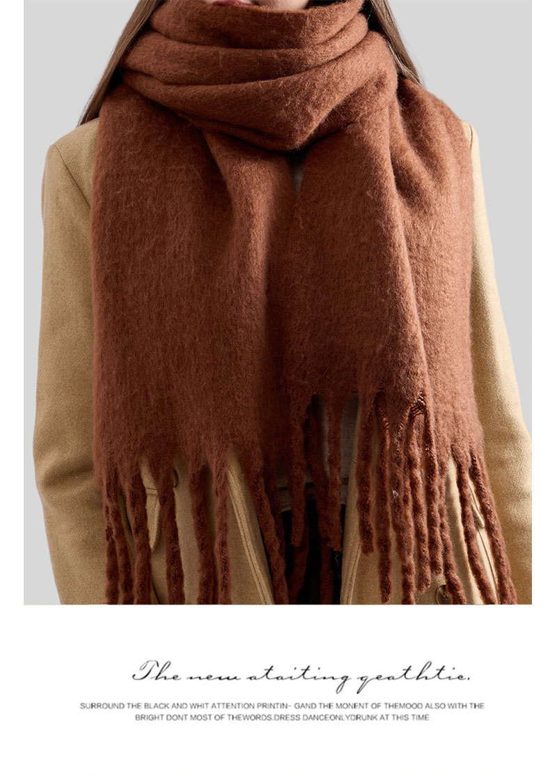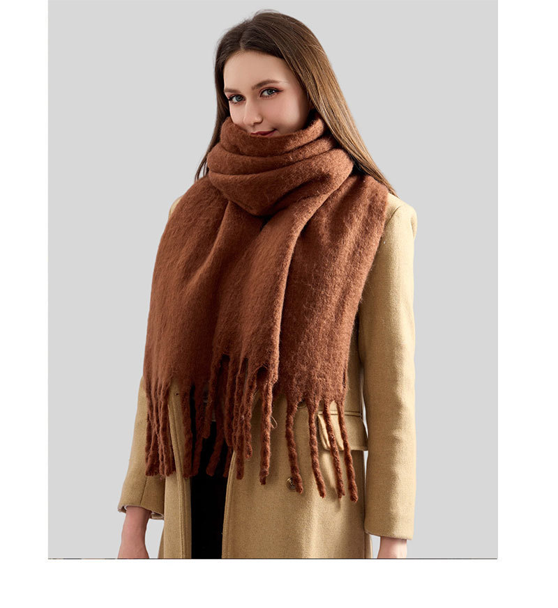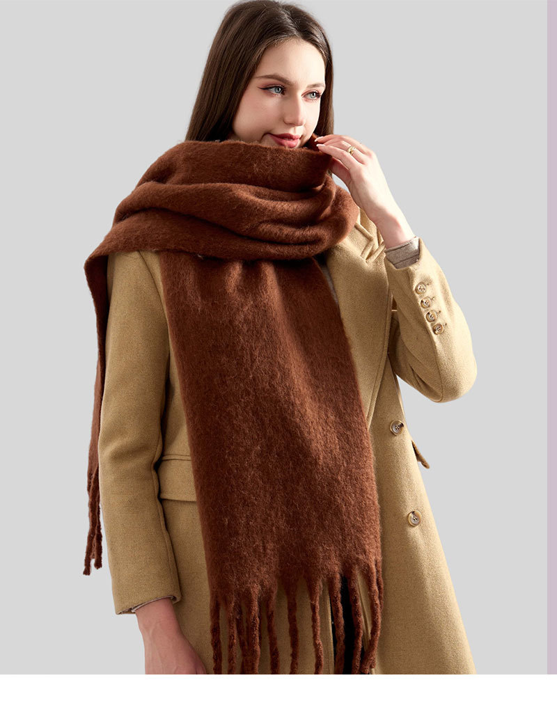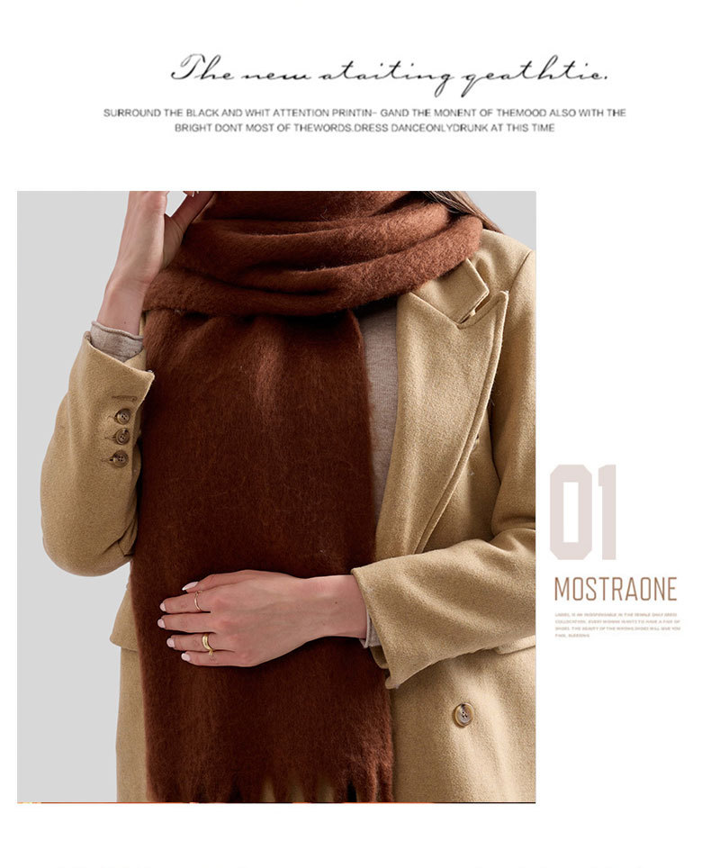 여성을위한 국경 간 인기있는 다목적 모헤어 솔리드 컬러 스카프 겨울 두꺼운 간단한 따뜻한 대형 목도리 스카프 도매스토어 가기