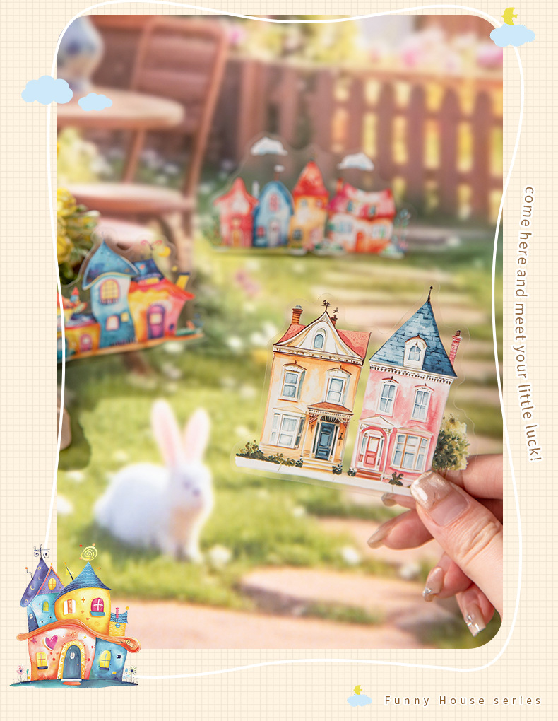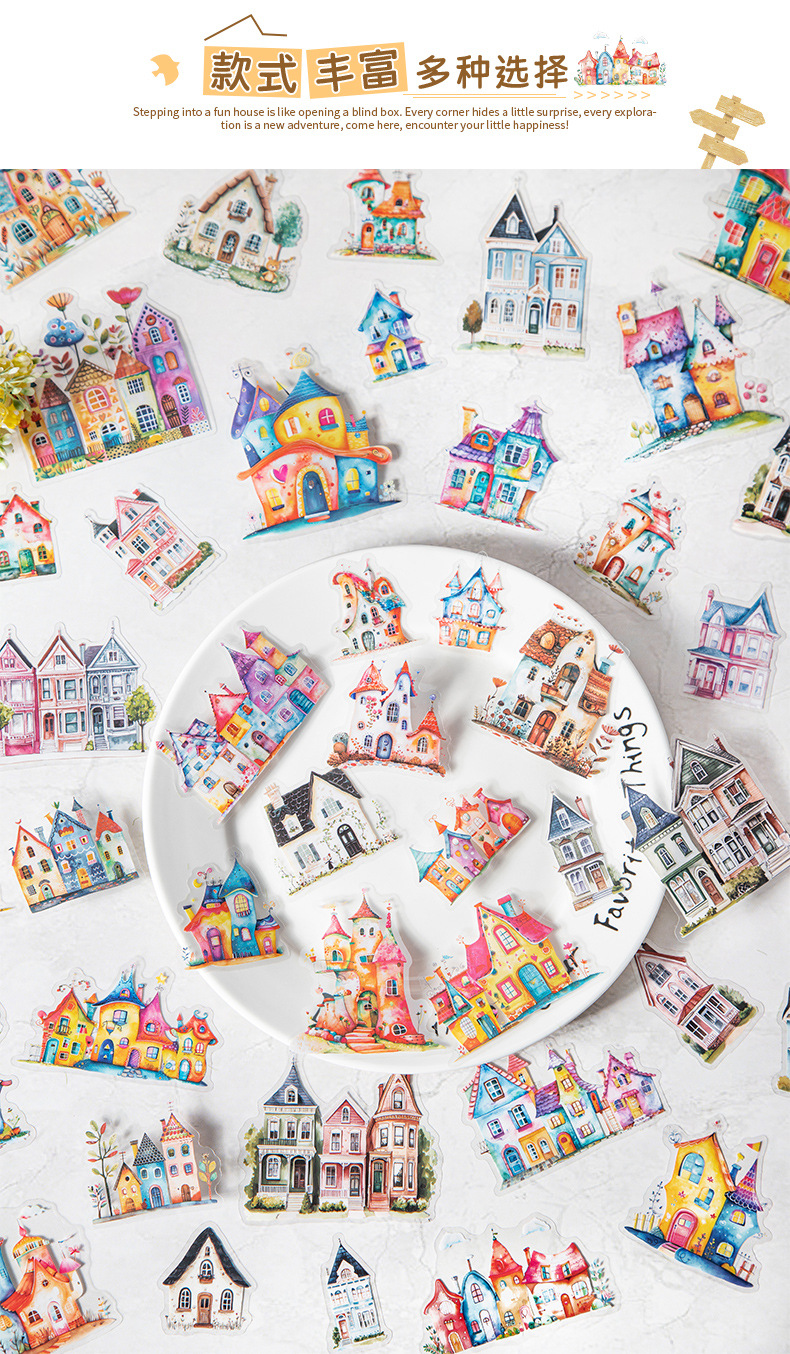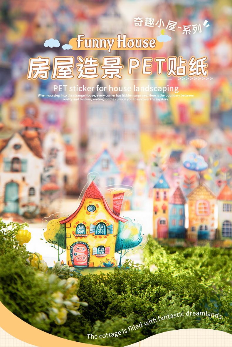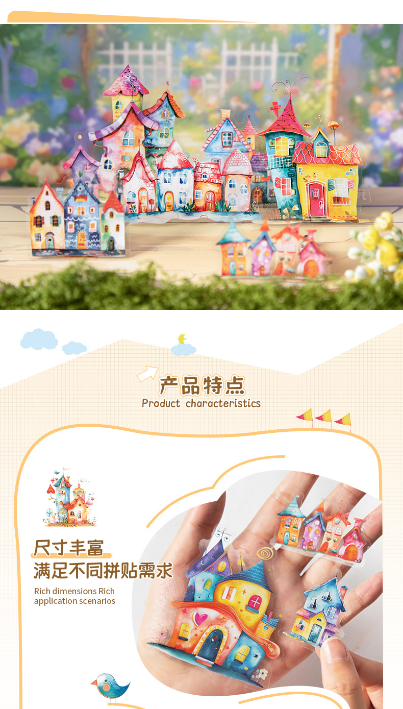 재미있는 오두막 집 조경 PET 스티커 복고풍 다채로운 동화 오두막 장면 핸드북 콜라주 재료스토어 가기