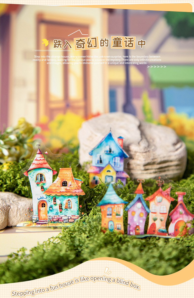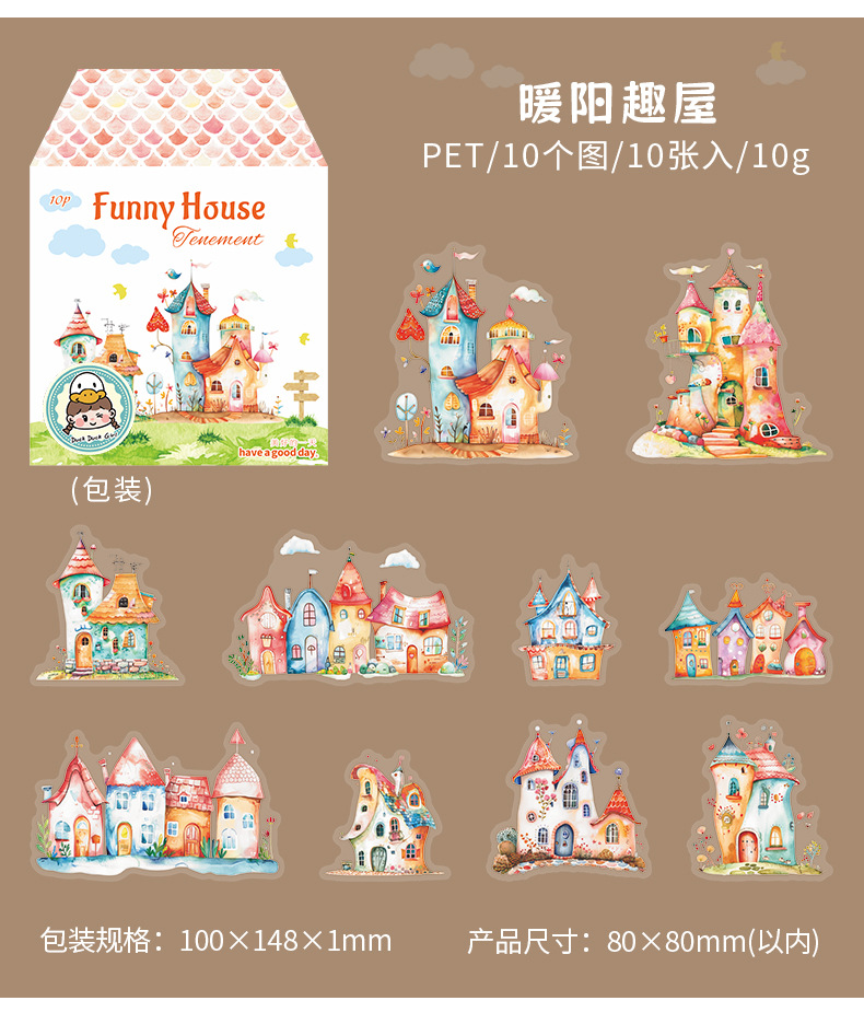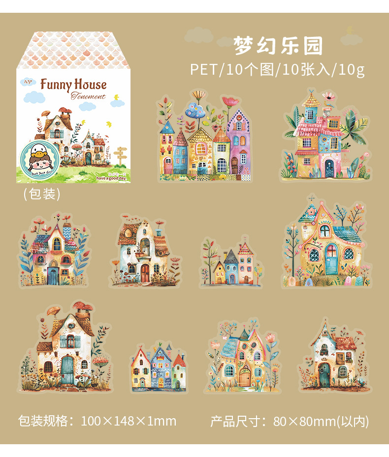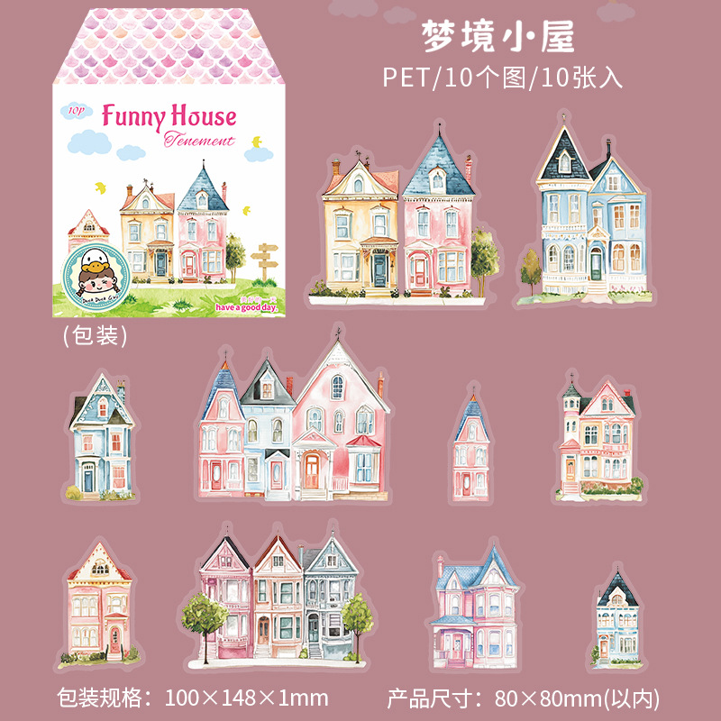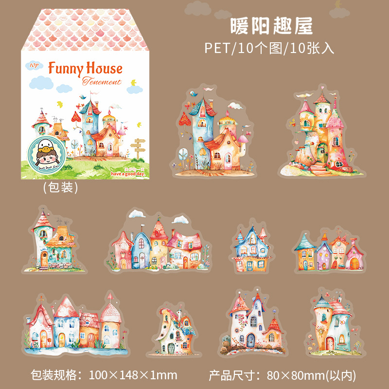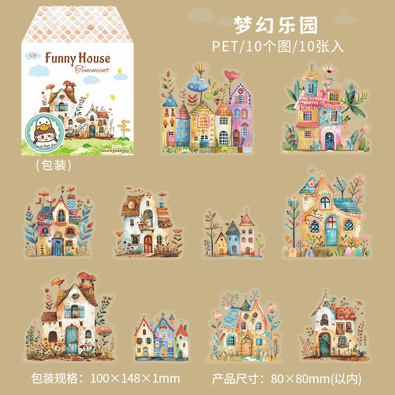 재미있는 오두막 집 조경 PET 스티커 복고풍 다채로운 동화 오두막 장면 핸드북 콜라주 재료스토어 가기