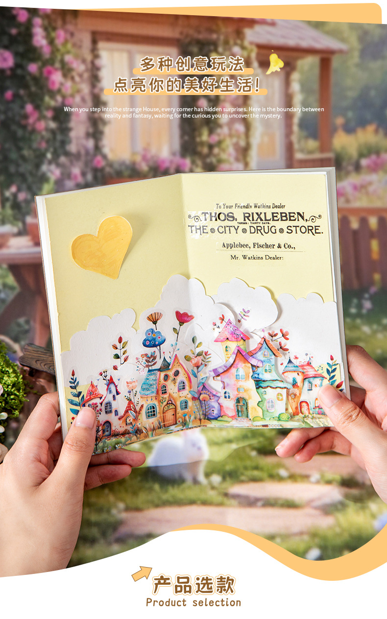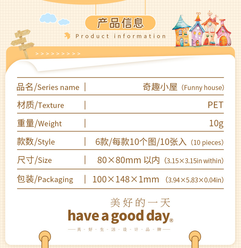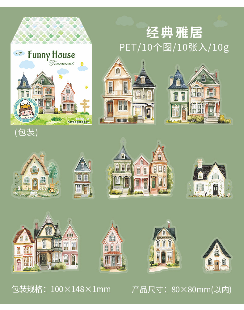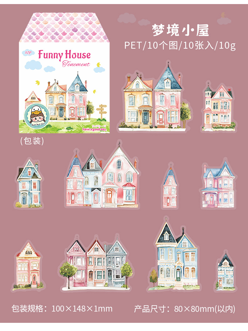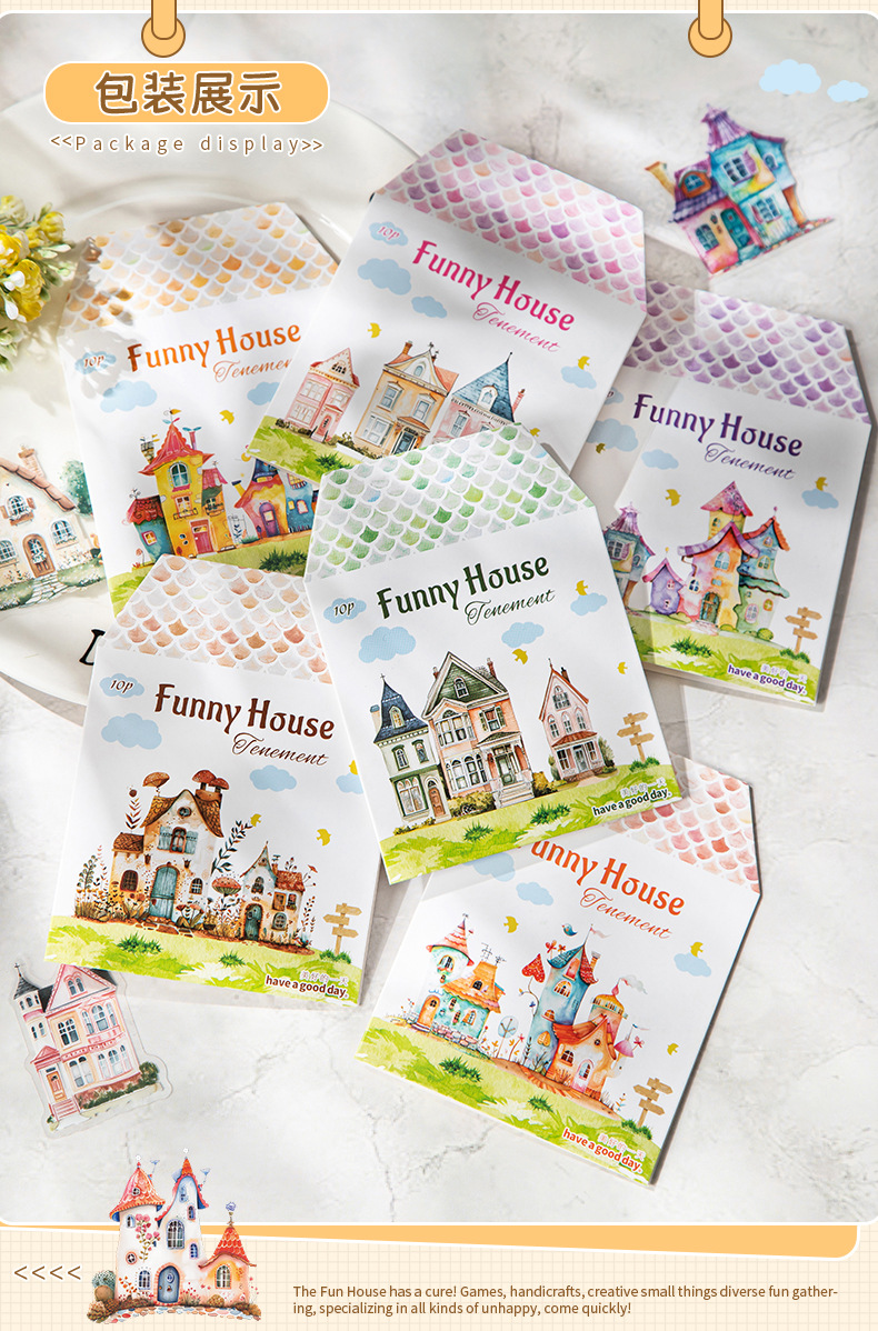 재미있는 오두막 집 조경 PET 스티커 복고풍 다채로운 동화 오두막 장면 핸드북 콜라주 재료스토어 가기