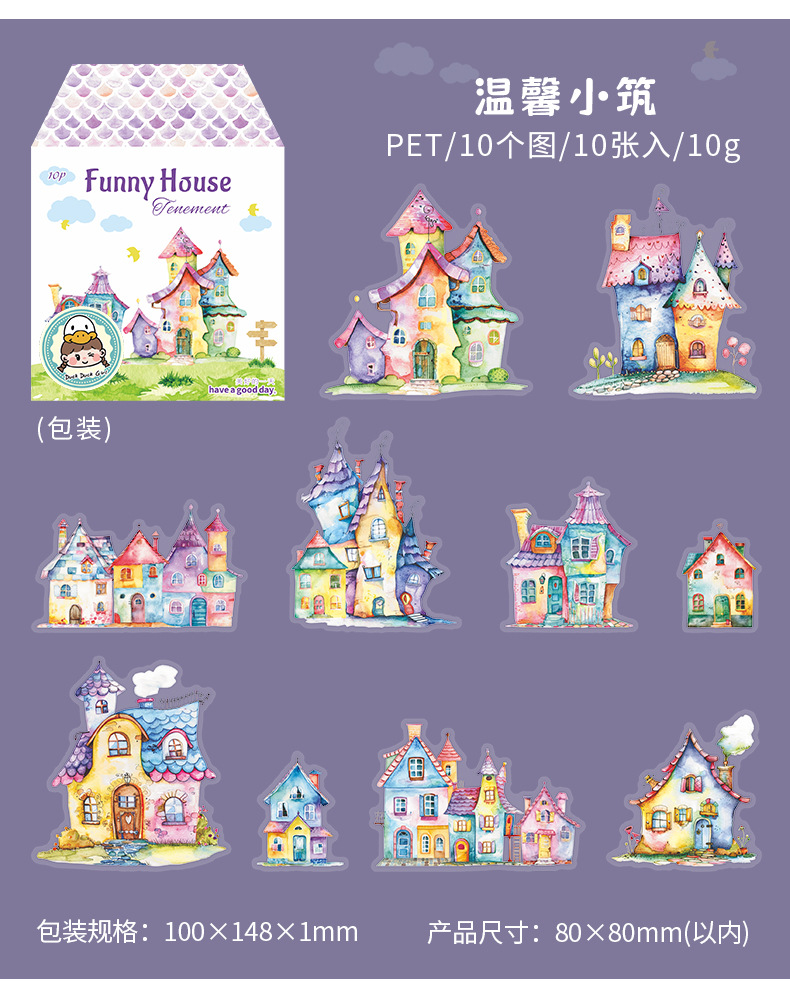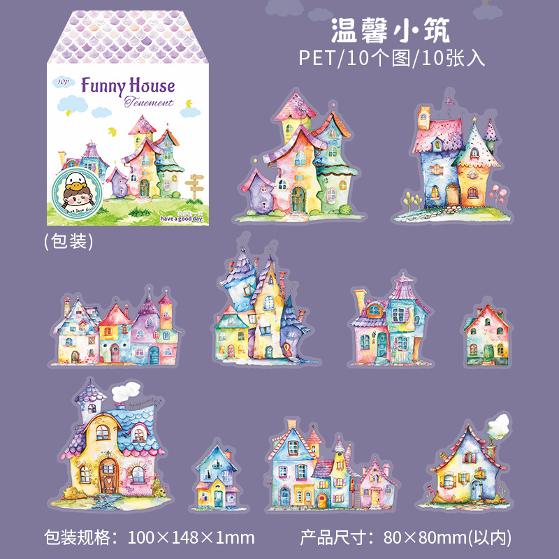 재미있는 오두막 집 조경 PET 스티커 복고풍 다채로운 동화 오두막 장면 핸드북 콜라주 재료