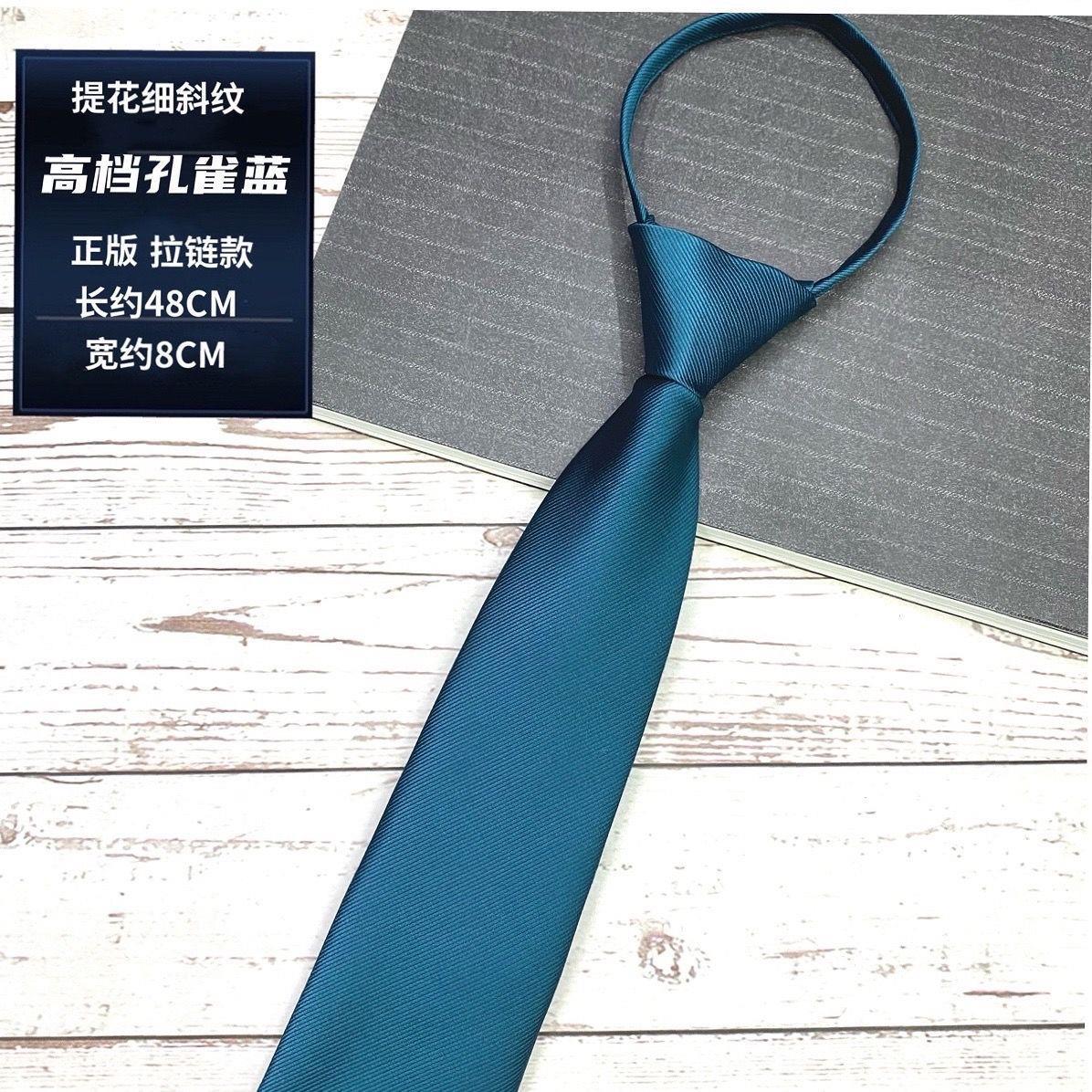 남성용 피콕 블루 타이, 고급 능직, 지퍼 프리, 셀프 타이, 비즈니스 정장, 게으른 사람들을 위한 쉬운 당김, 정품 좁은 버전