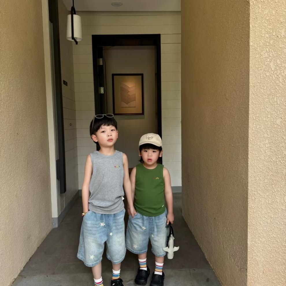 멀티 컬러 ~ 아동 여름 한국 스타일 서양식 문자 자수 라운드 넥 조끼 소년 캐주얼 티셔츠 아동용 탑스토어 가기
