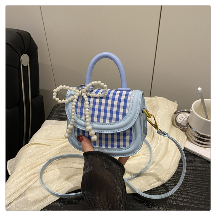 한국식 휴대용 어린이 가방, 패셔너블한 공주 격자 무늬 진주 동전 지갑, 고급 틈새 소녀 크로스 바디 작은 사각형 가방