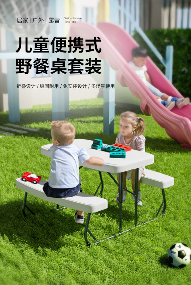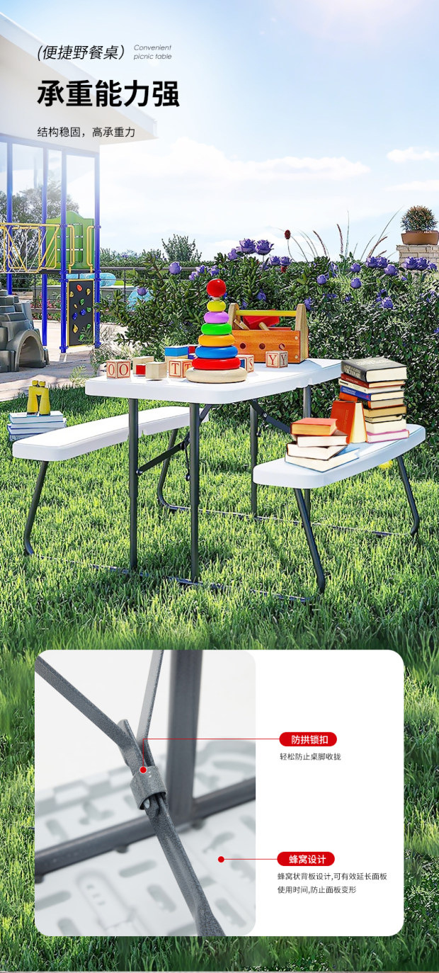 두꺼운 HDPE 소재 어린이 피크닉 테이블 HDPE 블로운 성형 접이식 야외 캠핑 휴대용 안뜰 식탁과 의자스토어 가기