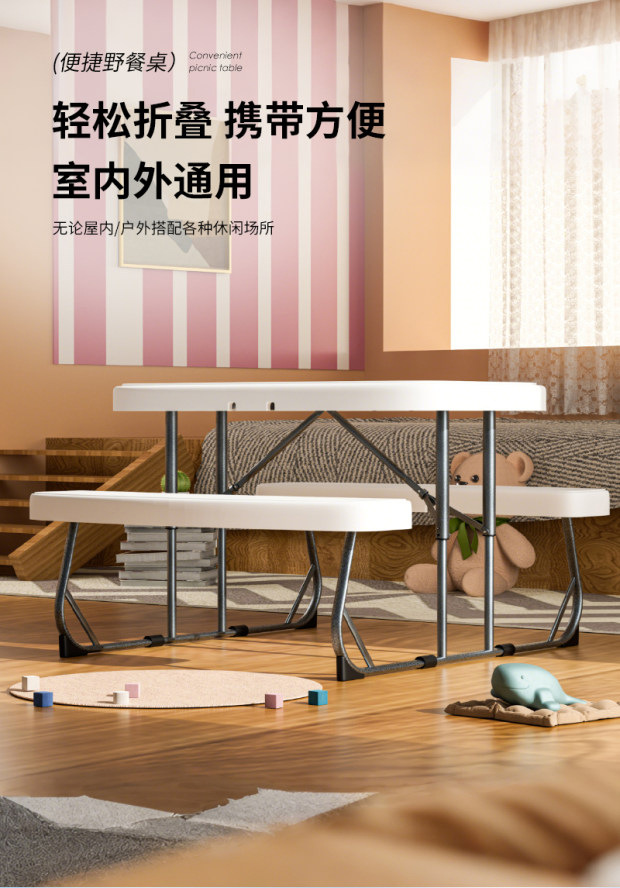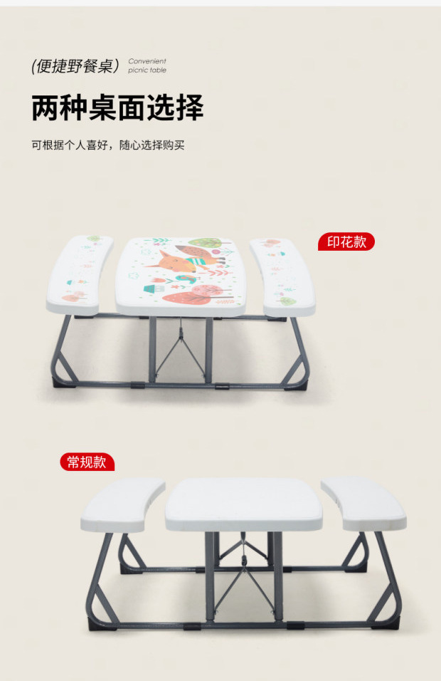 두꺼운 HDPE 소재 어린이 피크닉 테이블 HDPE 블로운 성형 접이식 야외 캠핑 휴대용 안뜰 식탁과 의자