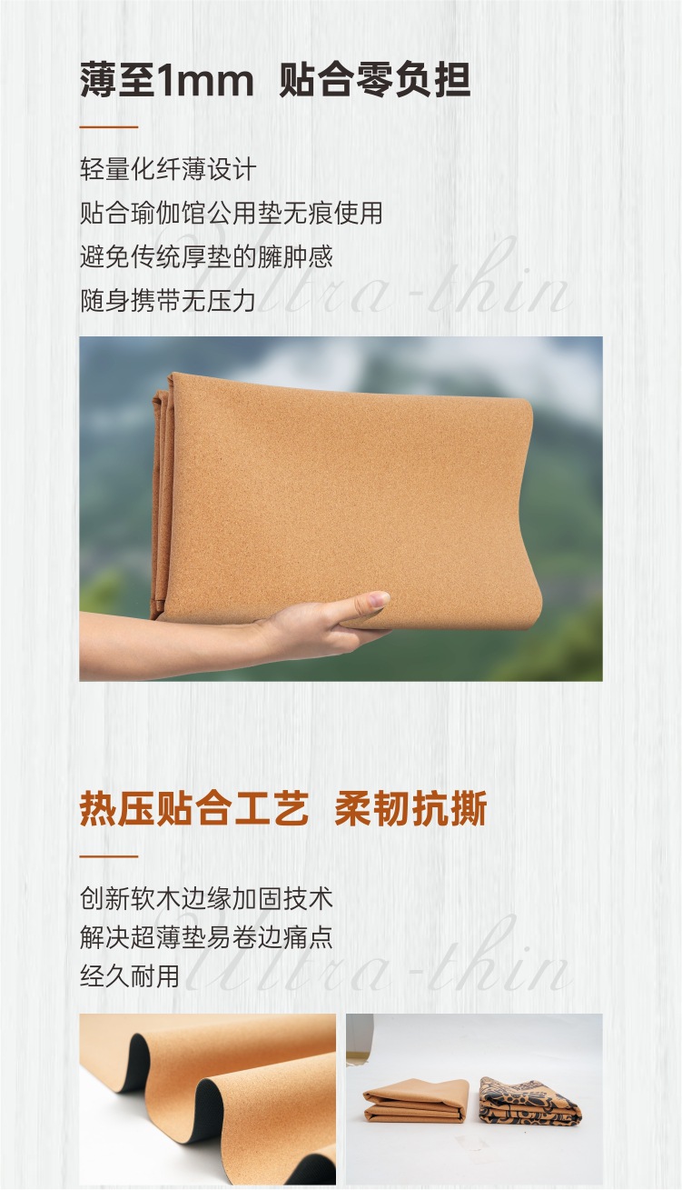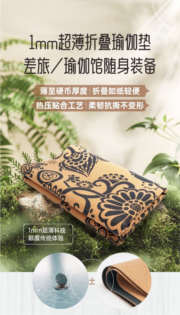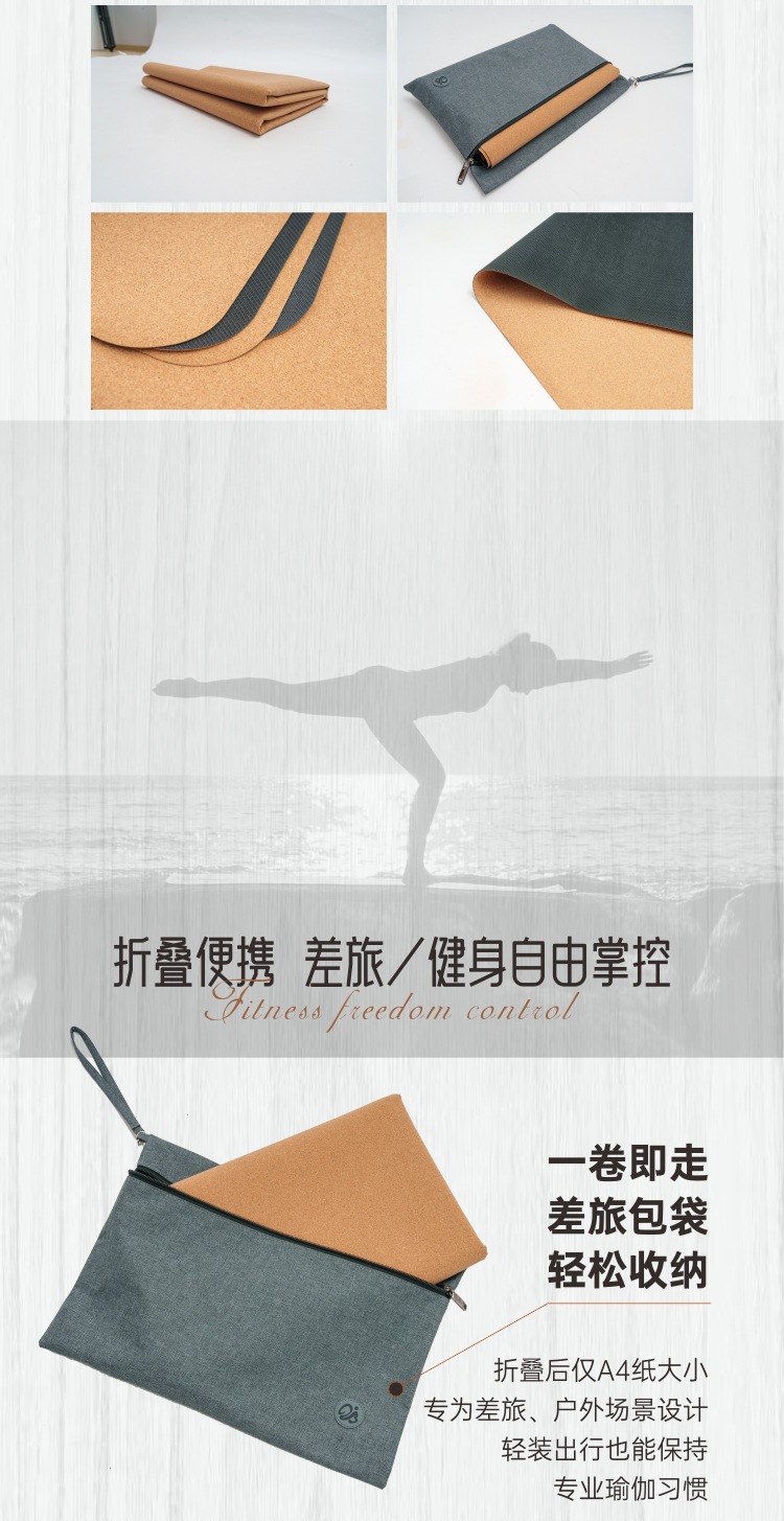1mm 코르크 천연 고무 요가 매트 얇은 휴대용 접이식 요가 타월 여행 매트