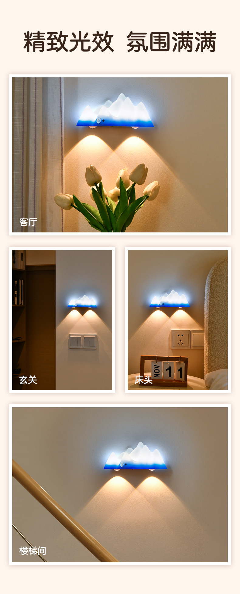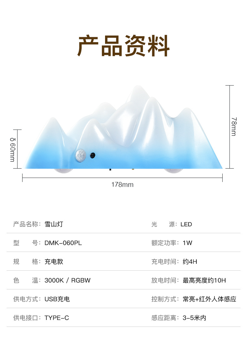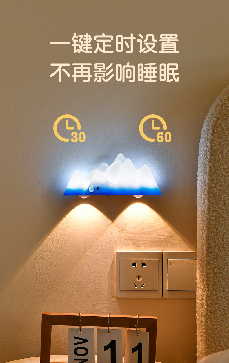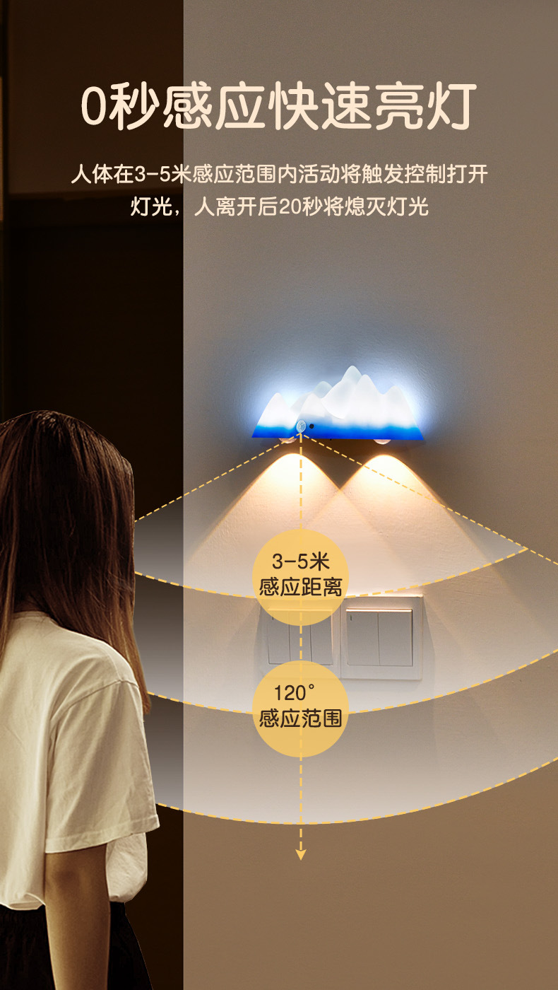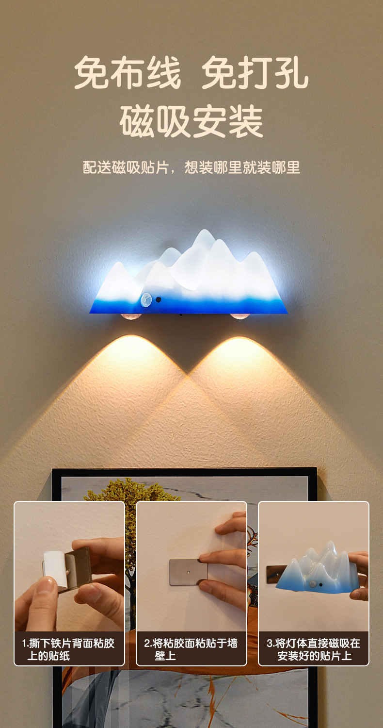 충전식 유도 야간 조명, 분위기 스포트라이트, 출입문 표시등, 배선 없음, 펀칭 없음, 침실 수면용 침대 옆 램프