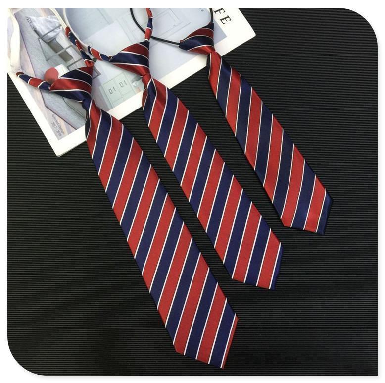 빨간색과 파란색 줄무늬 넥타이 초등 및 중등 학교 교복을위한 흑백 고무 밴드 남성과 여성 손으로 만든 지퍼 넥타이스토어 가기