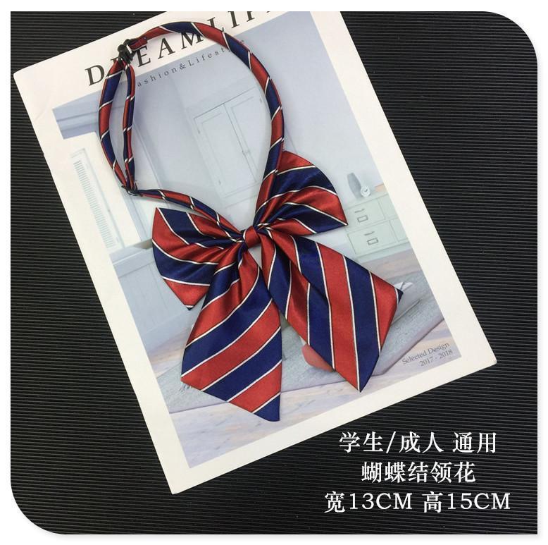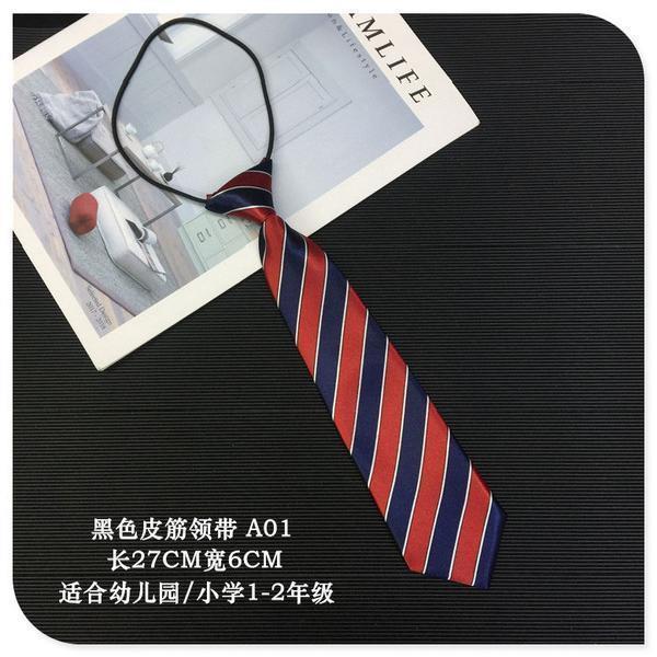 빨간색과 파란색 줄무늬 넥타이 초등 및 중등 학교 교복을위한 흑백 고무 밴드 남성과 여성 손으로 만든 지퍼 넥타이