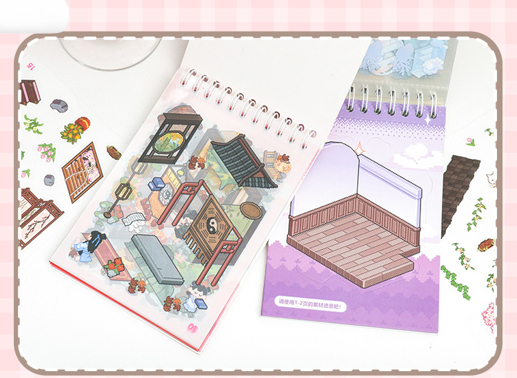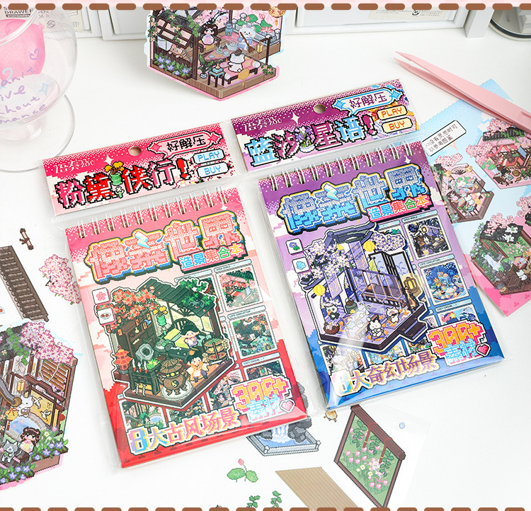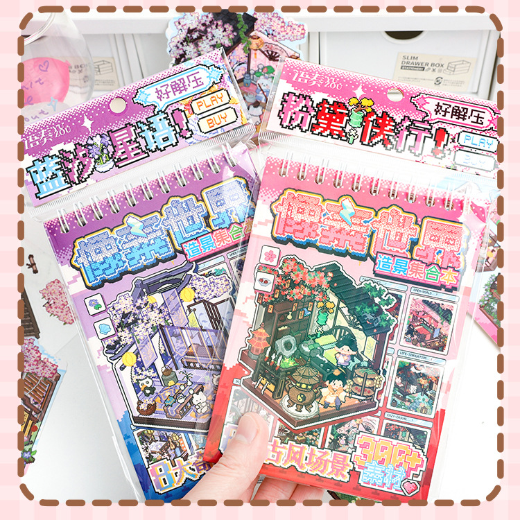 픽셀 조경 휴대용 ins 스타일 크리 에이 티브 감압 스택 스티커 3d 입체 캐빈 조경 재료 스티커스토어 가기