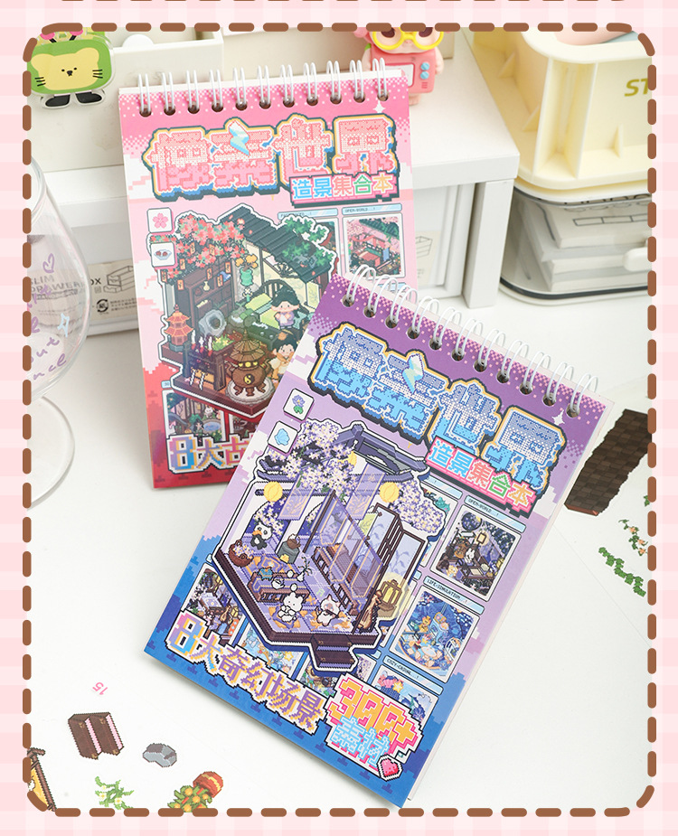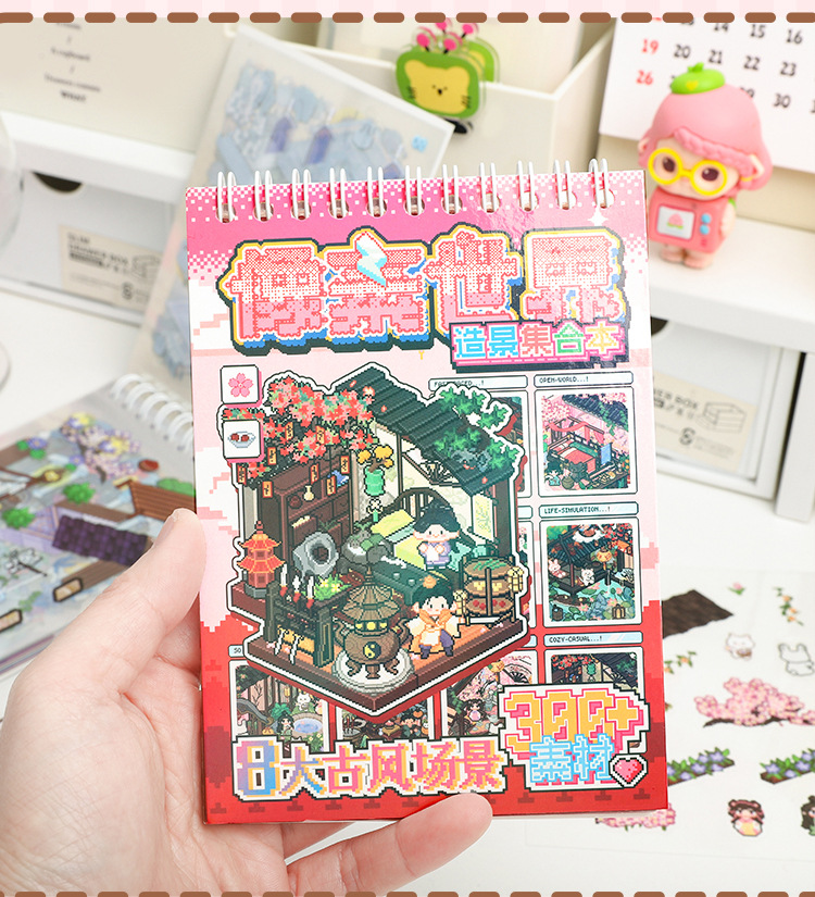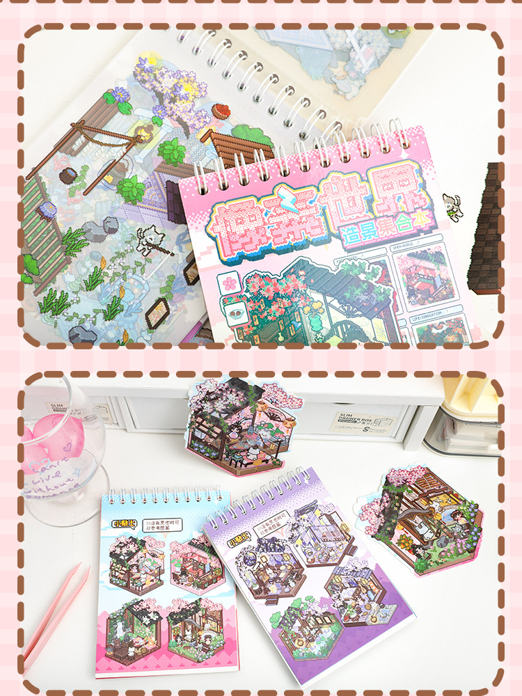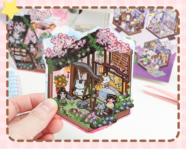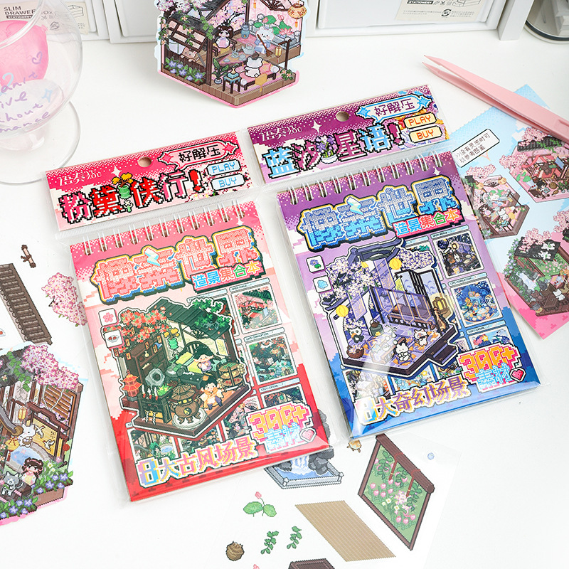픽셀 조경 휴대용 ins 스타일 크리 에이 티브 감압 스택 스티커 3d 입체 캐빈 조경 재료 스티커