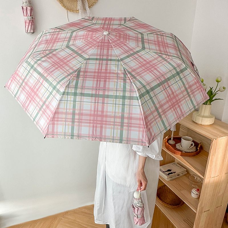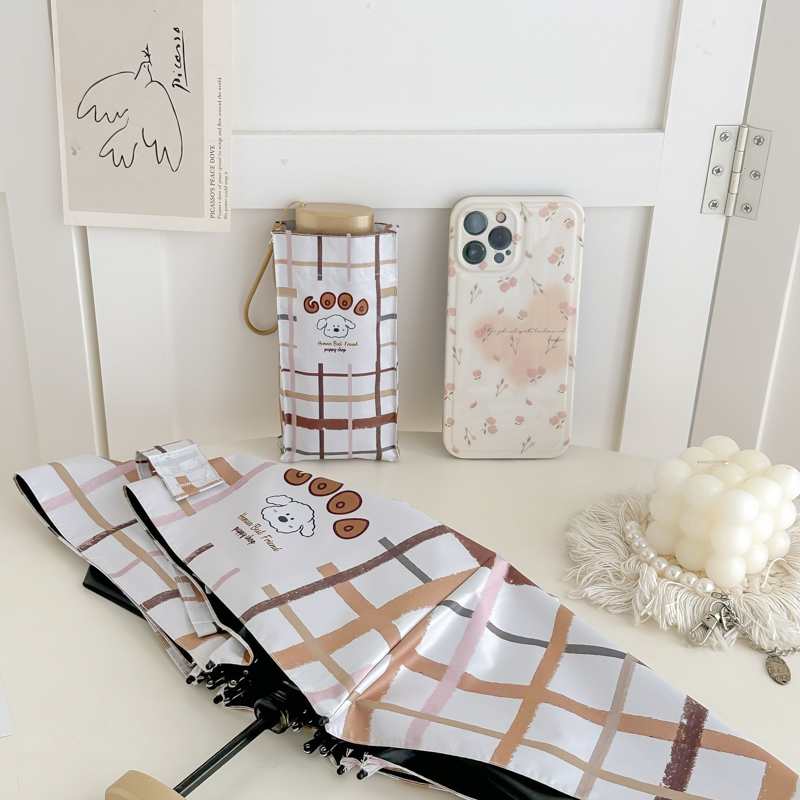 • 코코아 브라운 체크무늬 미니 포켓우산은 작은 가방에 넣어도 좋아요