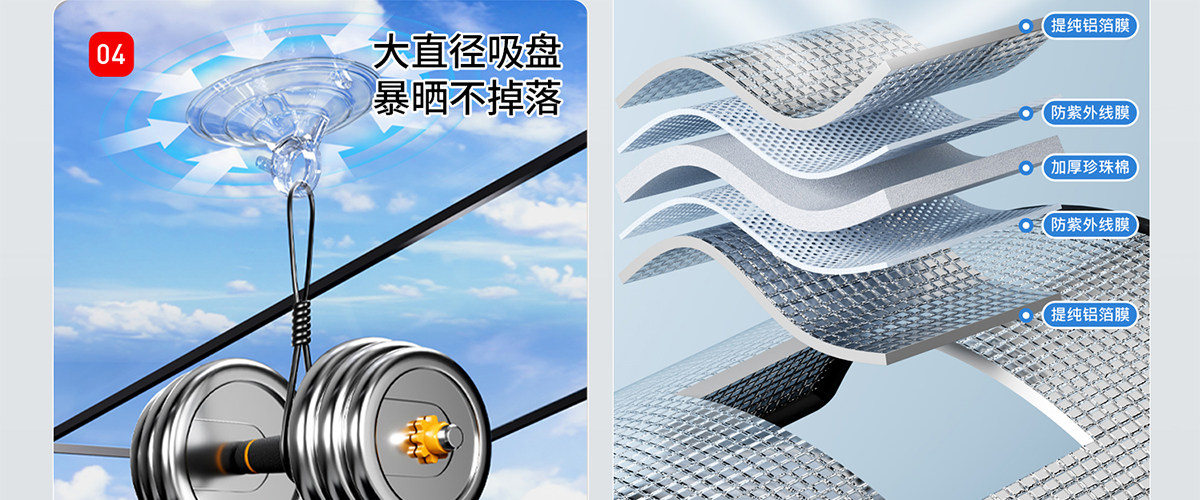 • [맞춤형 특수 샷] 검정색 가장자리 포함 - 양면 알루미늄 호일 [업그레이드된 고온 방지 흡입 컵]