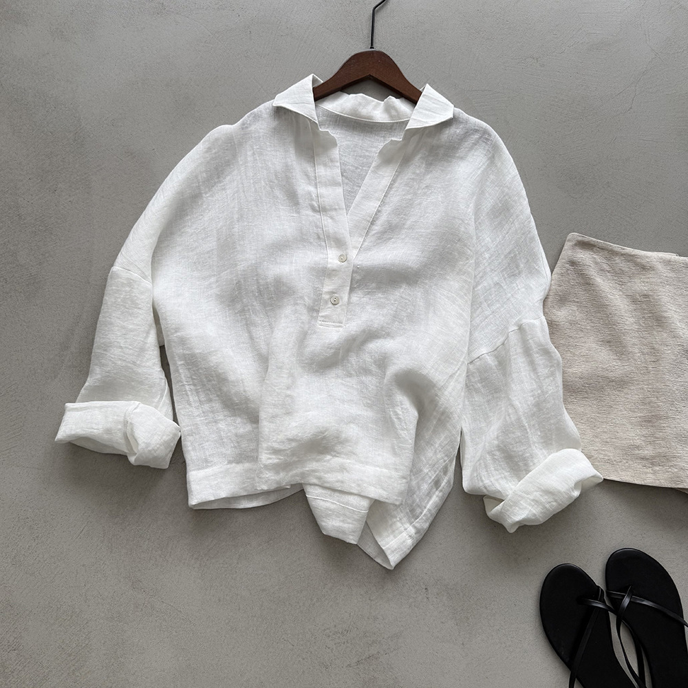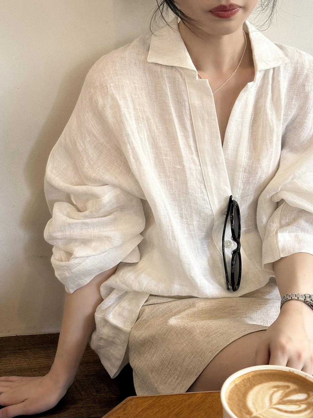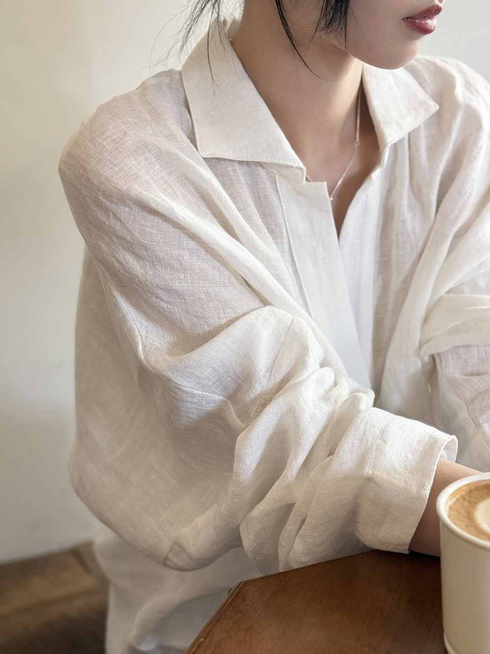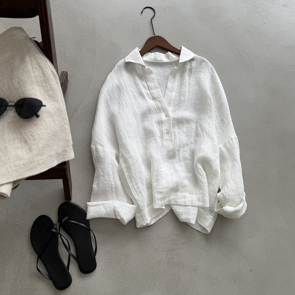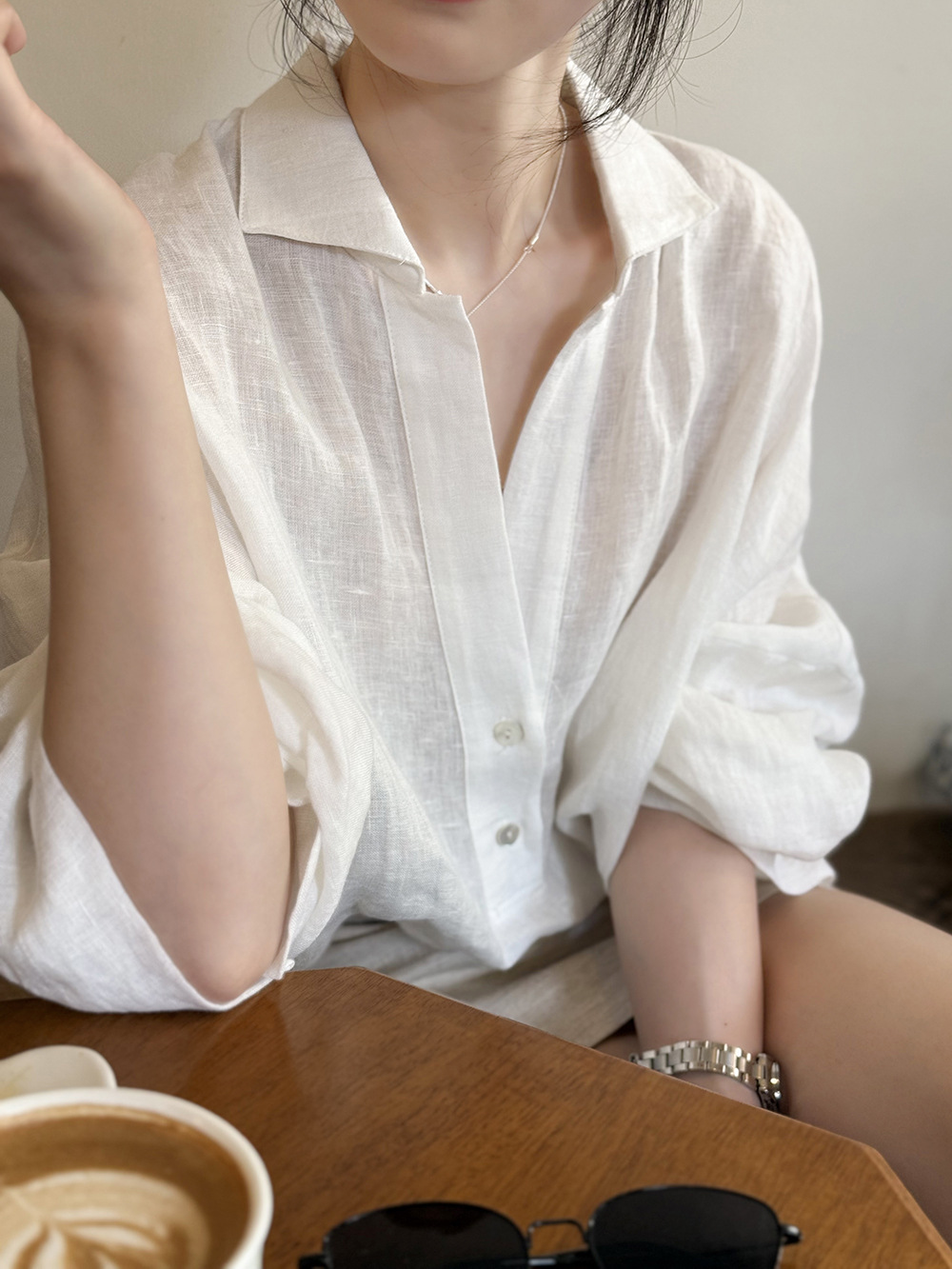 자기 유지 폭발 추천 ~ 캐주얼 게으른 프랑스 고급 흰색 린넨 셔츠 여성의 여름 선 스크린 탑스토어 가기