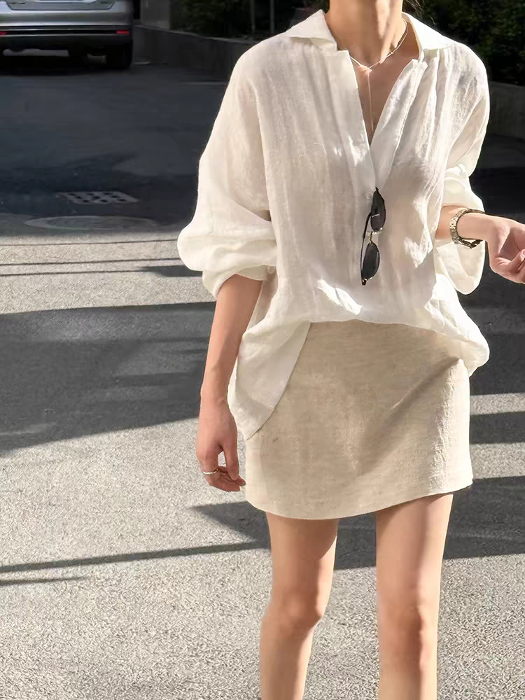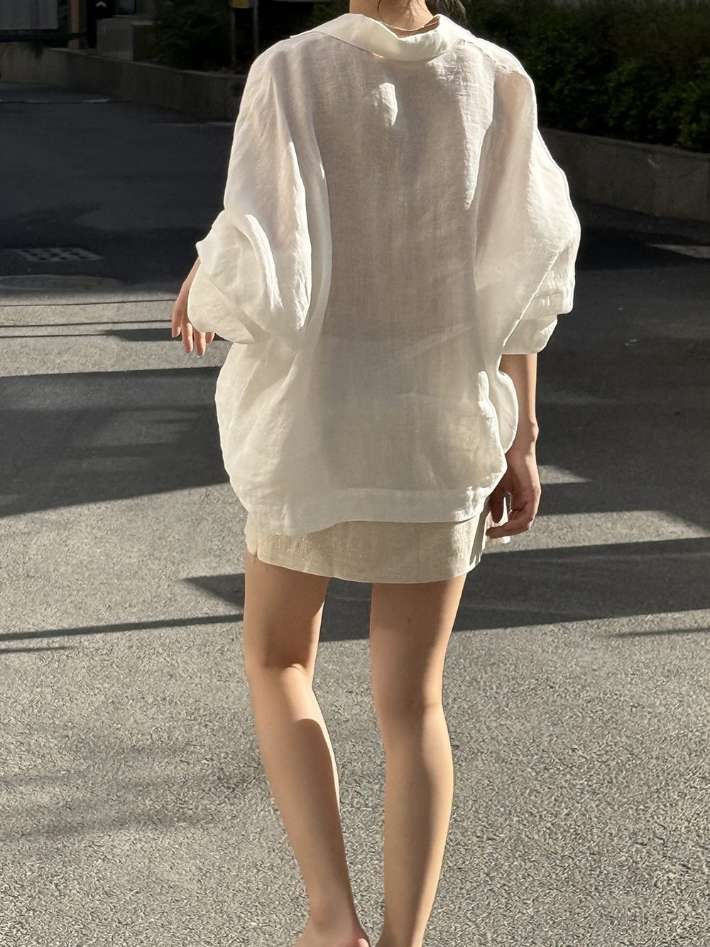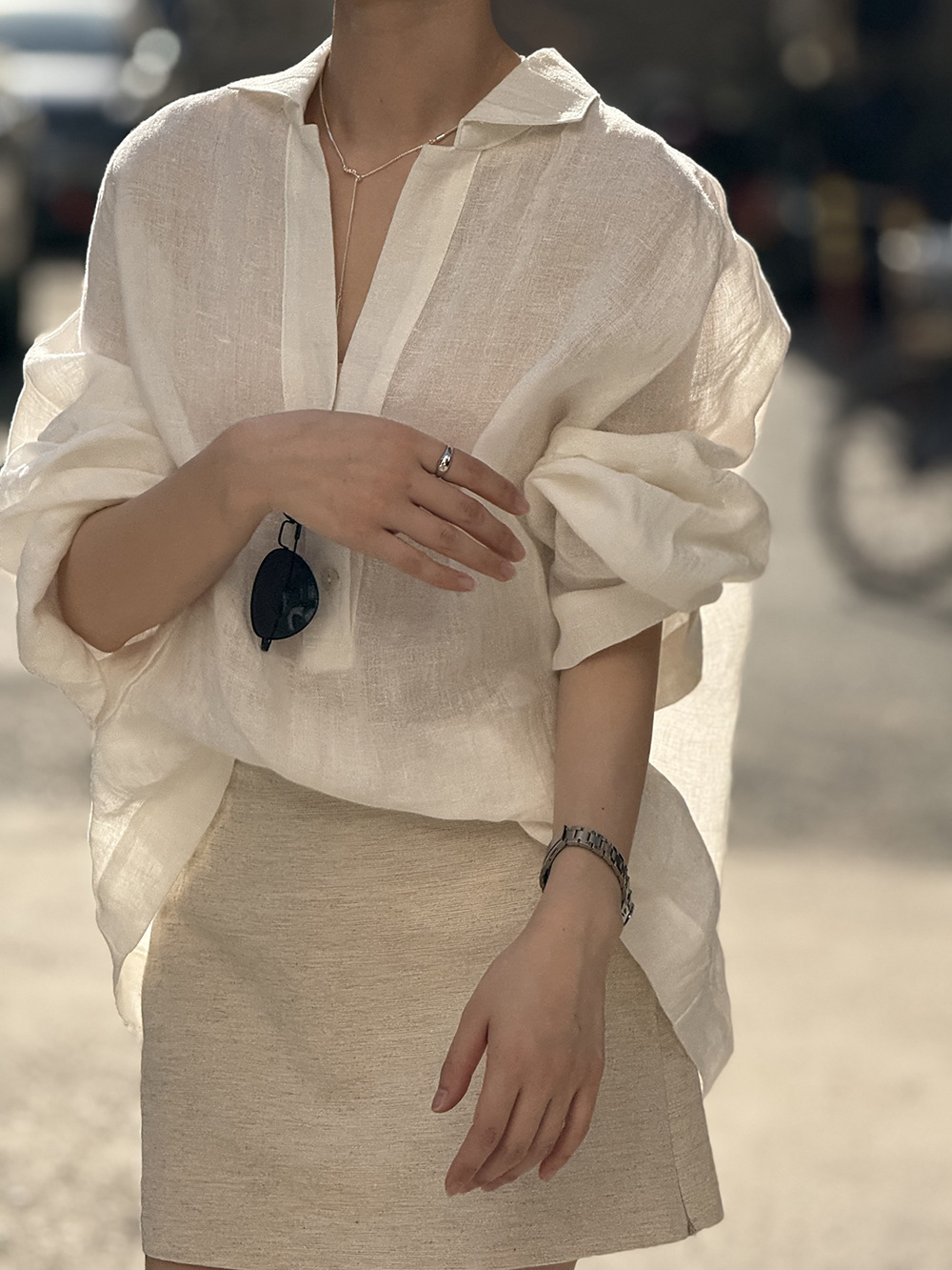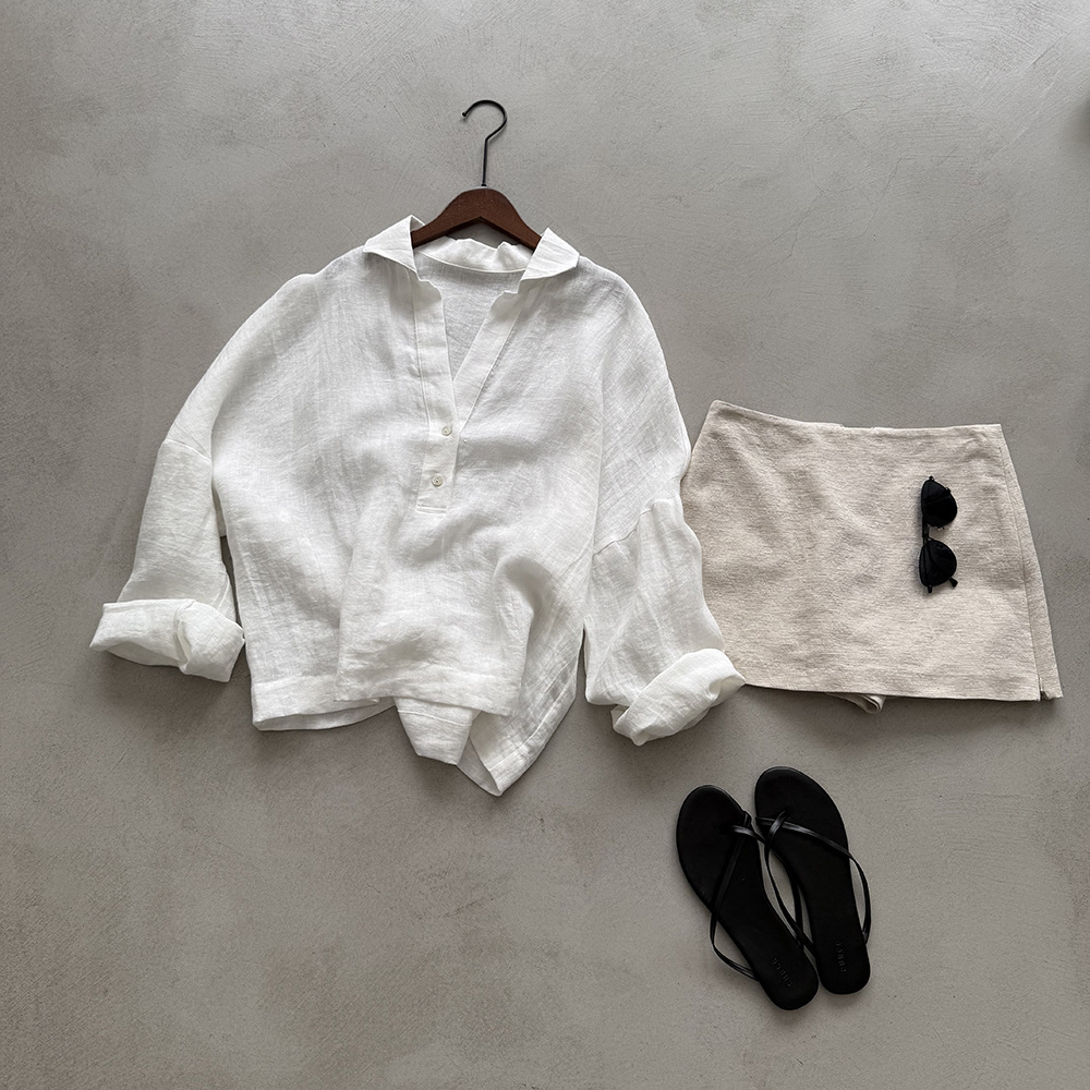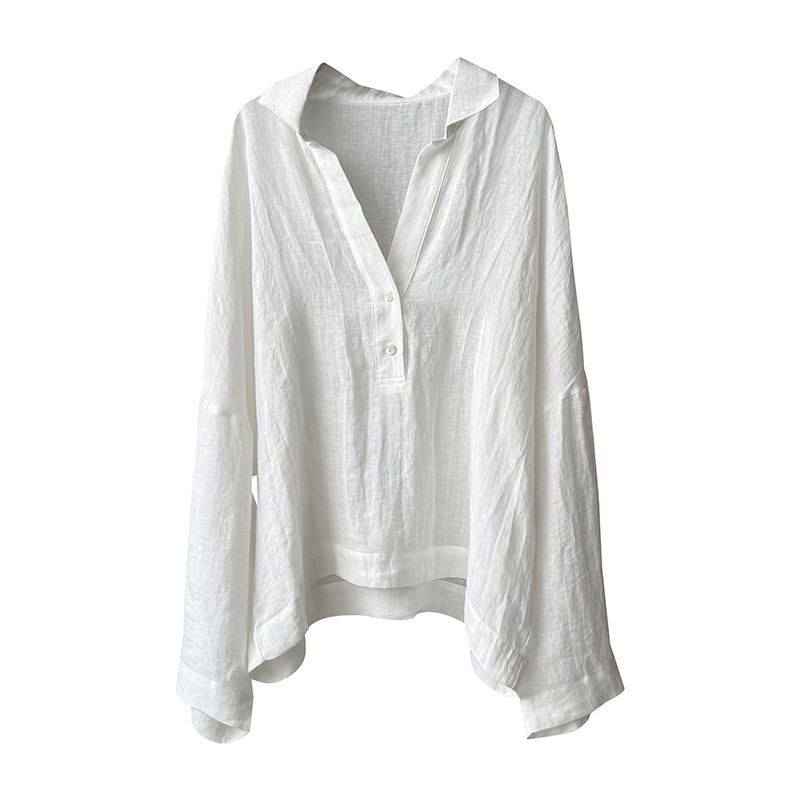 자기 유지 폭발 추천 ~ 캐주얼 게으른 프랑스 고급 흰색 린넨 셔츠 여성의 여름 선 스크린 탑스토어 가기