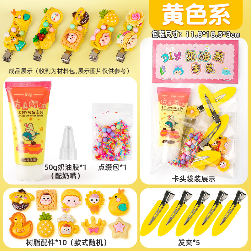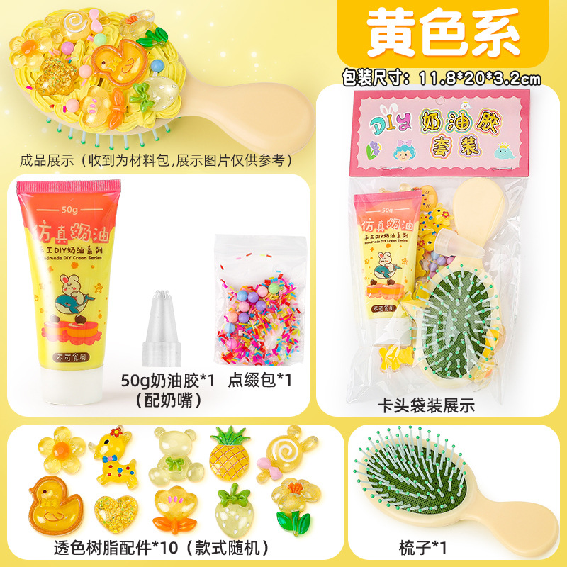 • 노란색 크림 글루 빗 세트(카드 헤드백에 포장)