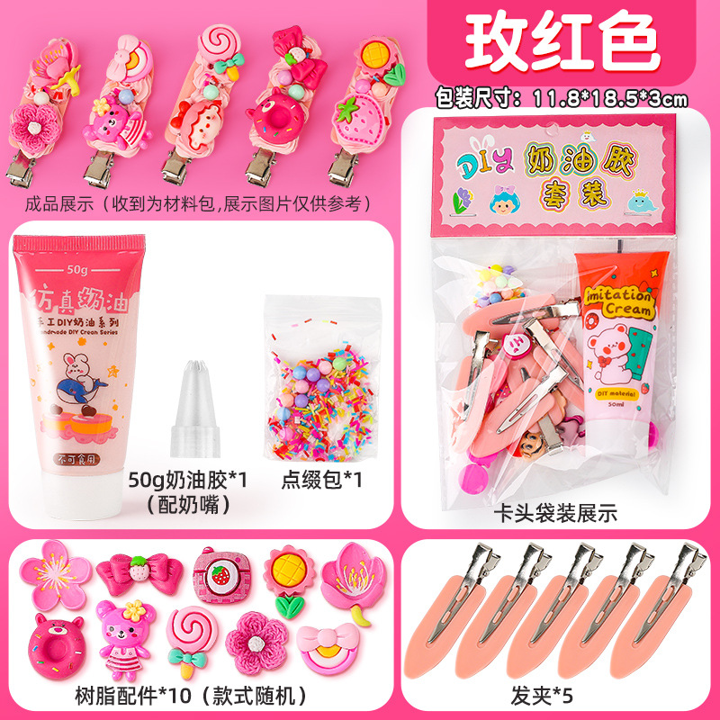 • 로즈 레드 크림 글루 머리핀 세트(카드 헤드백)