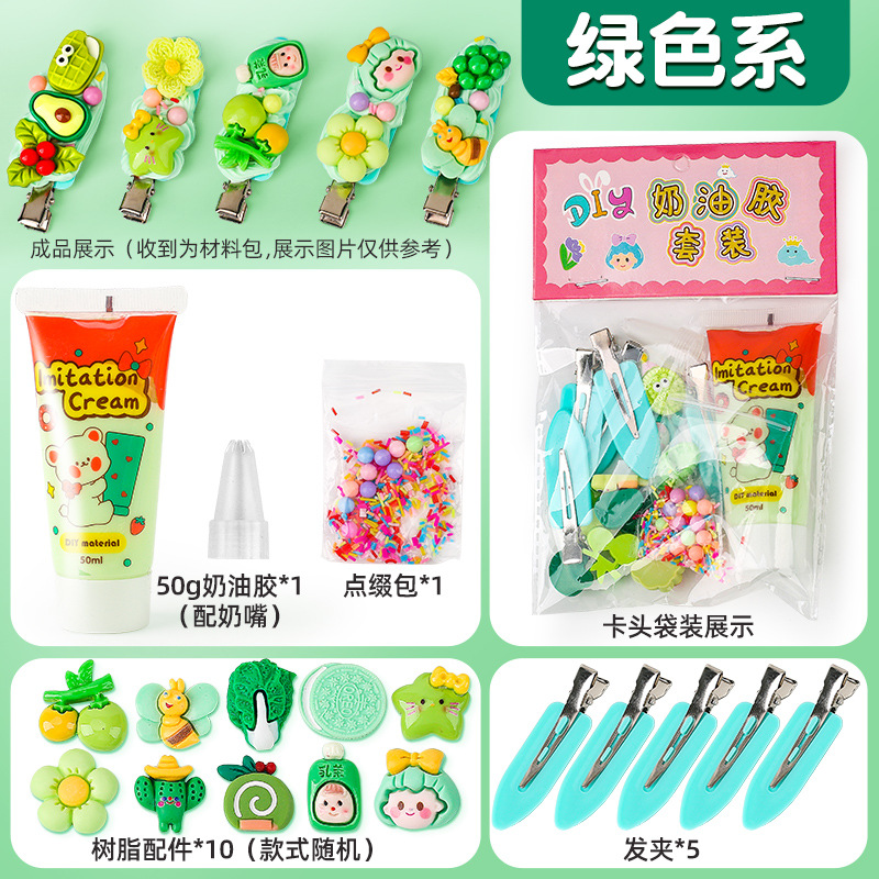 • 그린 크림 글루 머리핀 세트(카드백에 포장)