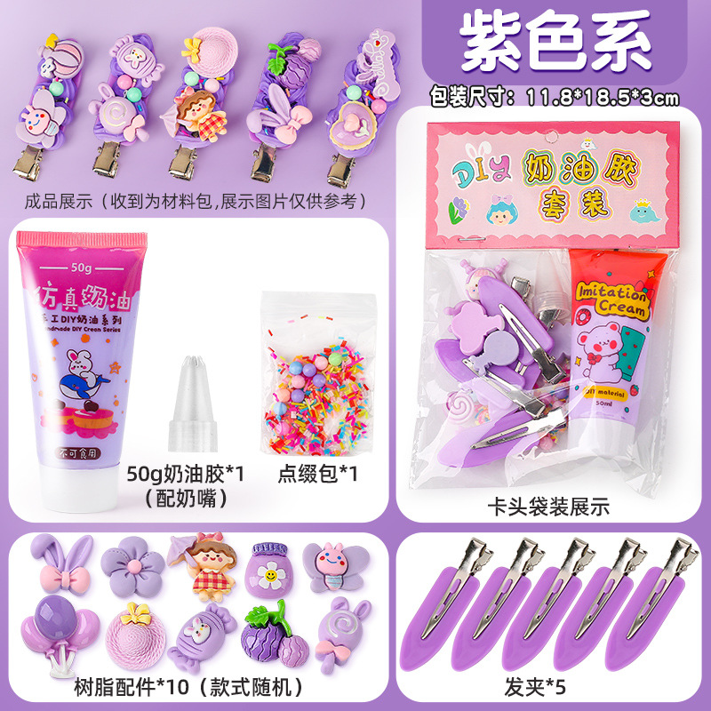 • 퍼플 크림 글루 머리핀 세트(카드 헤드백)