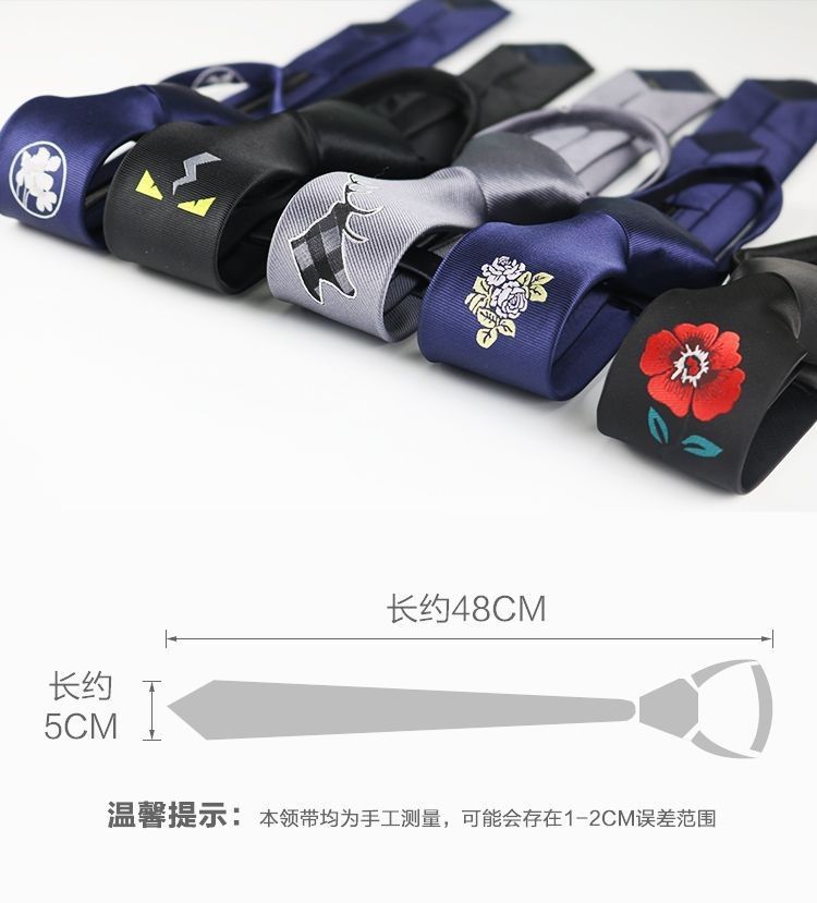 남성용 넥타이, 지퍼, 맞춤형, 트렌디하고 패셔너블한 단색, 게으른 사람들을 위한 쉬운 당김, 5CM 작은 좁은 한국식 여성용 자수 넥타이