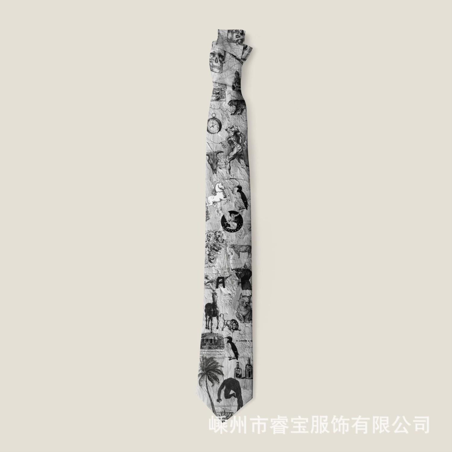 8.5cm 아메리칸 와이드 버전 레트로 넥타이 오리지널 2024 여름 뉴 빈티지 남성 및 여성 캐주얼 맥주 동물 넥타이