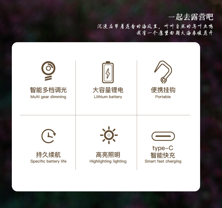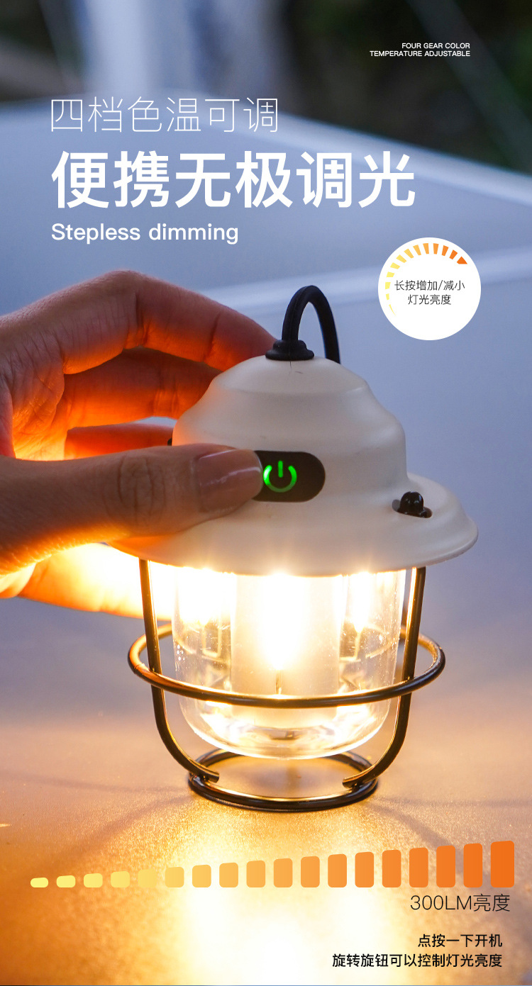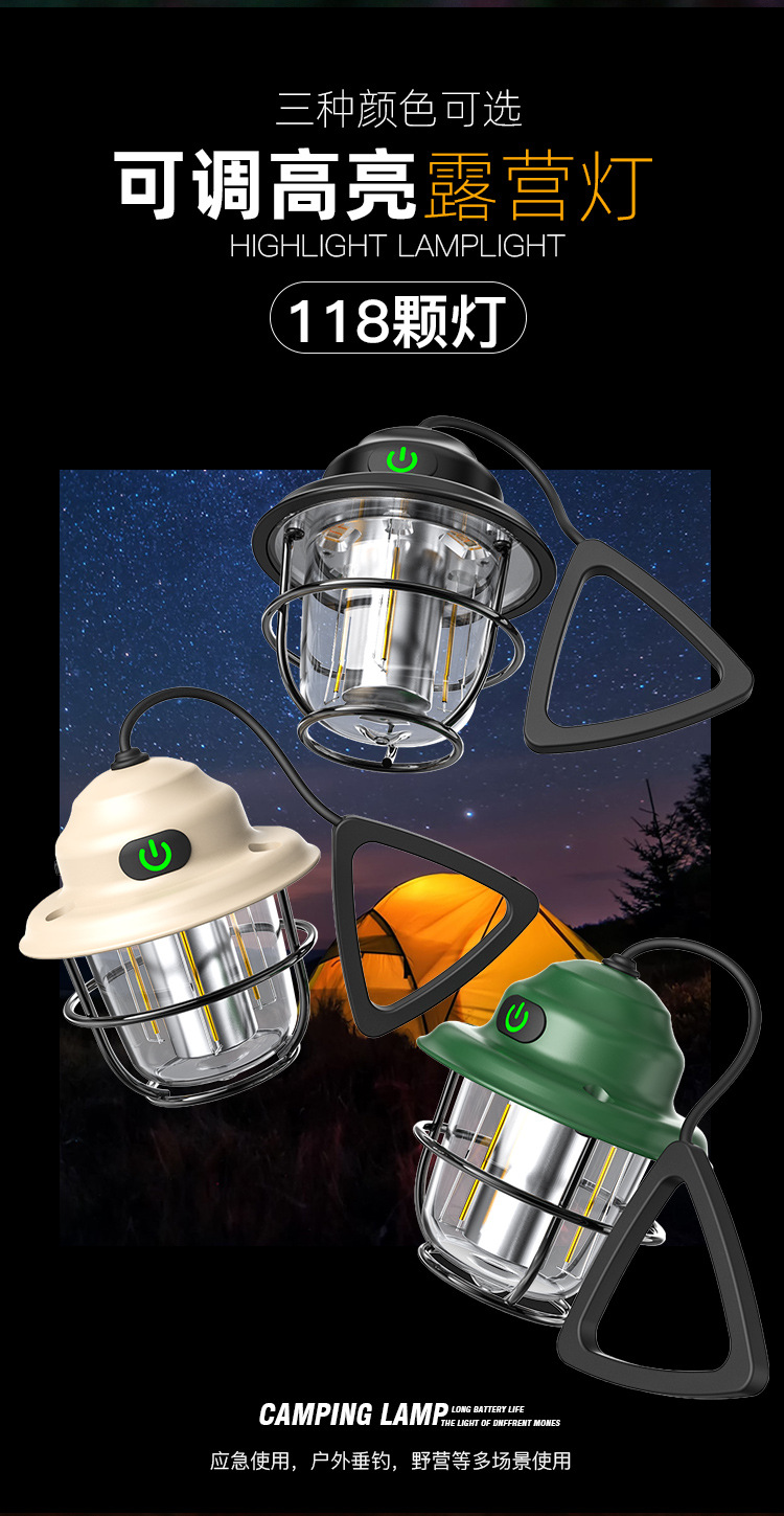 국경 간 야외 캠핑 분위기 조명 USB 긴 배터리 수명 휴대용 텐트 캠핑 조명 솔방울 조명 작은 샹들리에스토어 가기