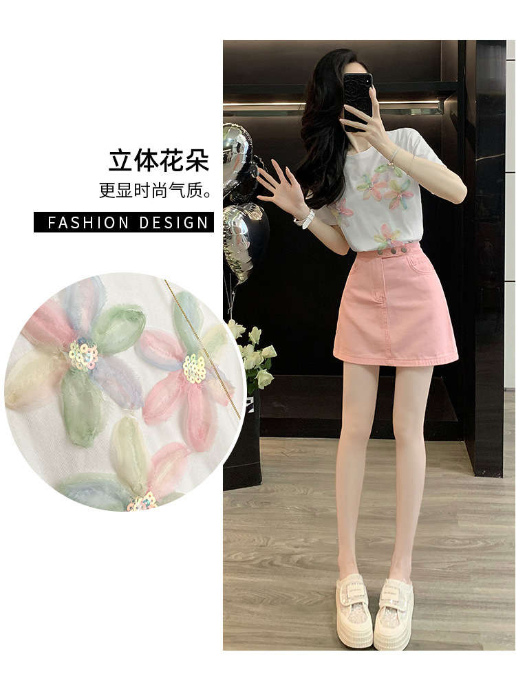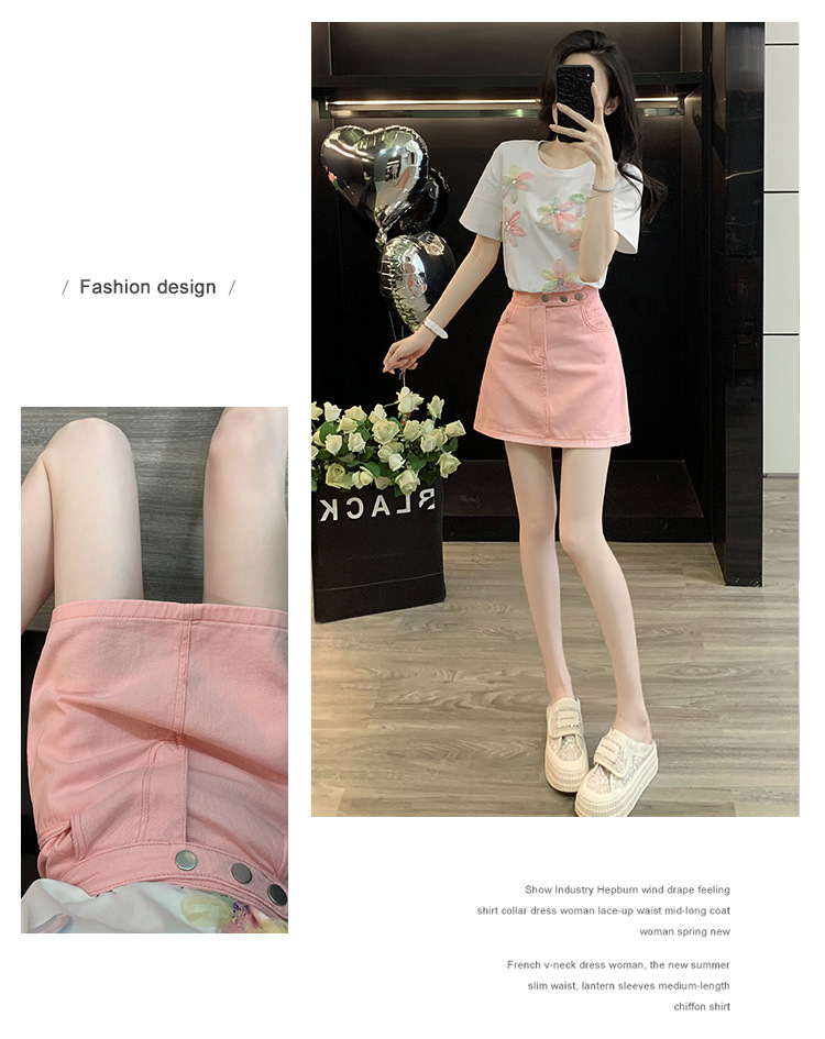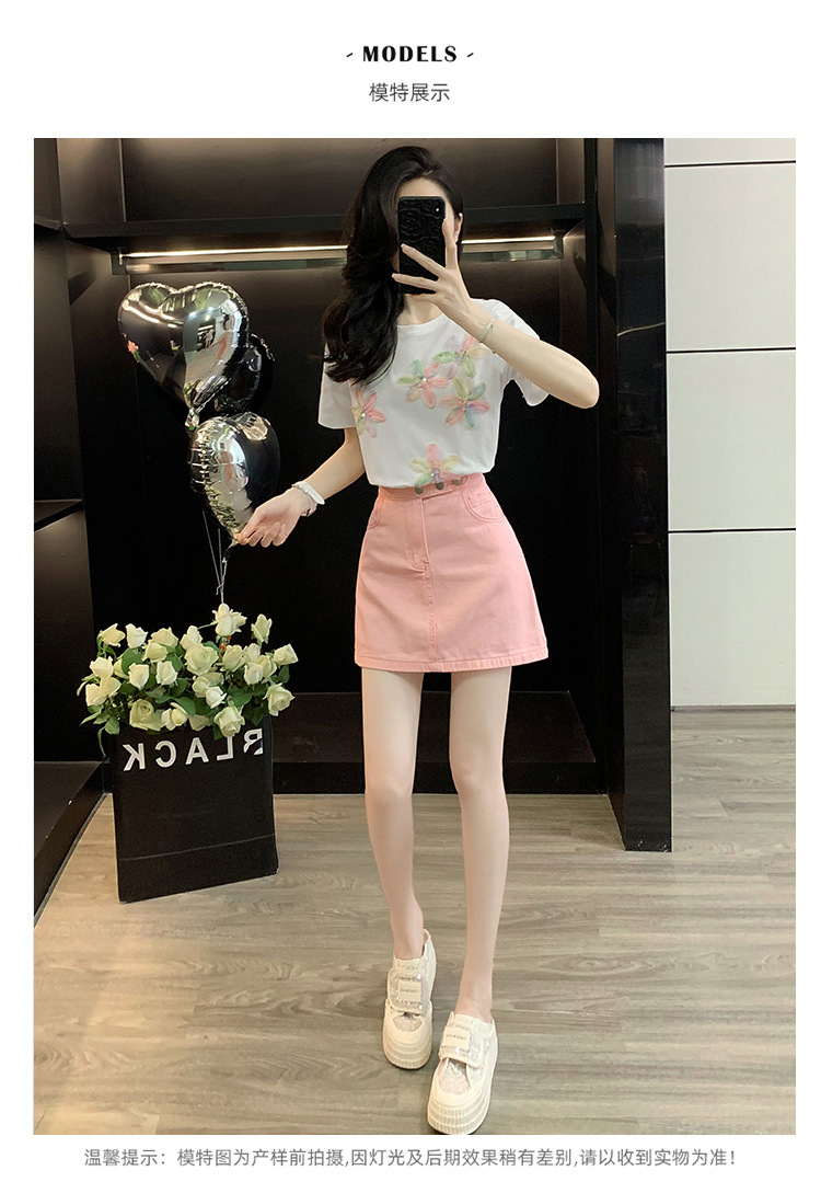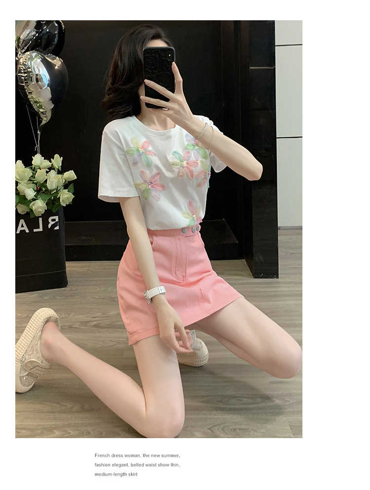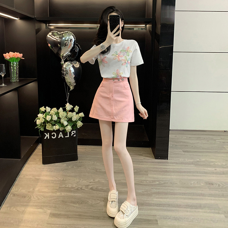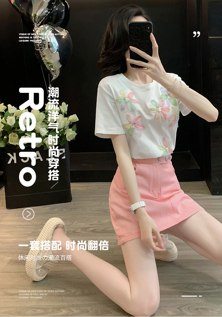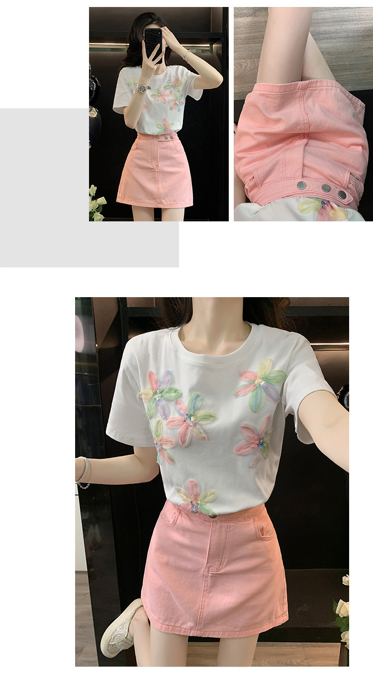 몸집이 작은 사람들을 위한 패셔너블한 정장 스커트, 여름 스타일, 나이를 줄여주는 반팔 티셔츠, 데님 스커트, 투피스 슈트, 한국스토어 가기