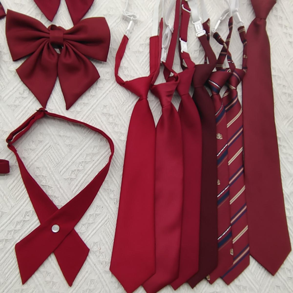 부르고뉴 넥타이 JK 넥타이 여성 솔리드 컬러 스트라이프 클래스 유니폼 졸업 사진 레드 학사 유니폼 보우 선원 유니폼