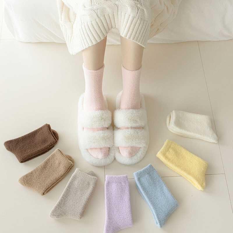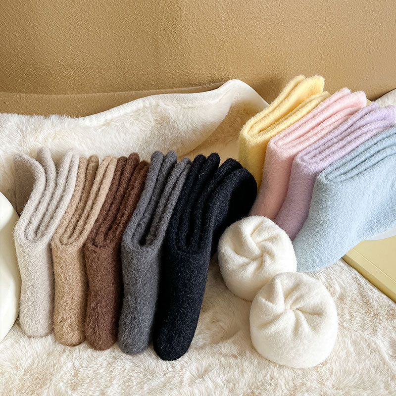 여성용 겨울양말, 호주산 벨벳 종아리 양말, 부드럽고 촉감이 좋은 방한 따뜻한 양말, 피부친화적인 파일 양말, 스노우 부츠, 레트로 양말스토어 가기