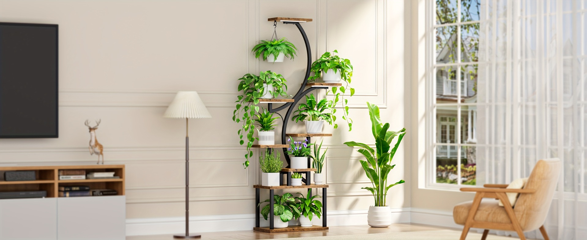 전체 스펙트럼 성장을 갖춘 다용도 8단 실내 식물 스탠드