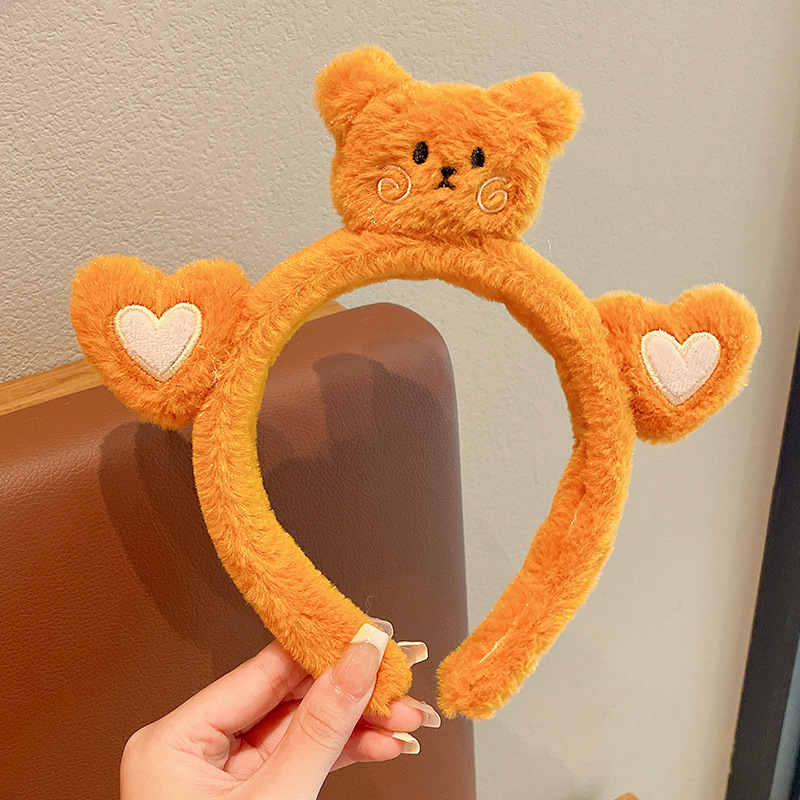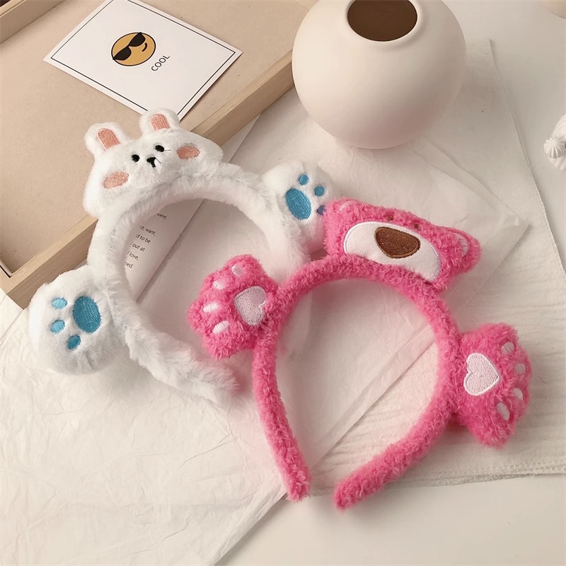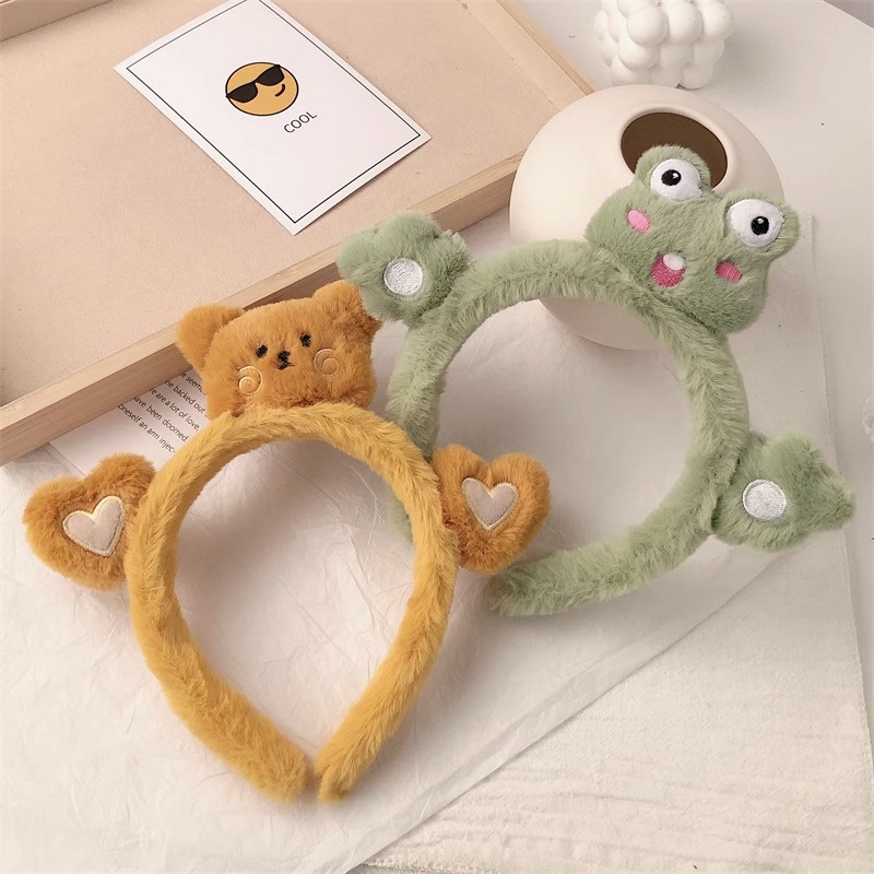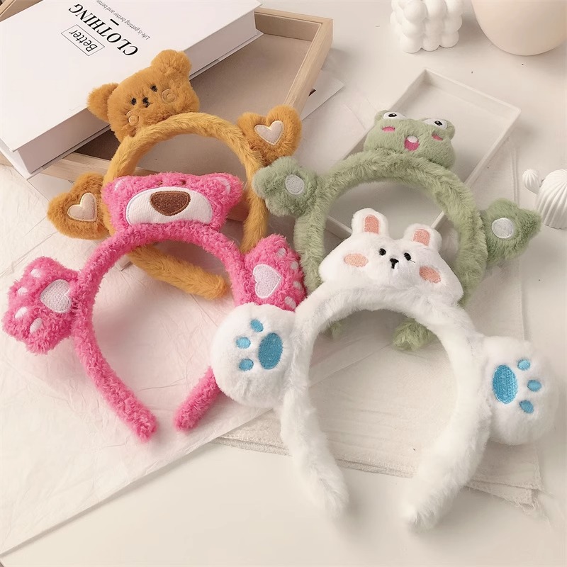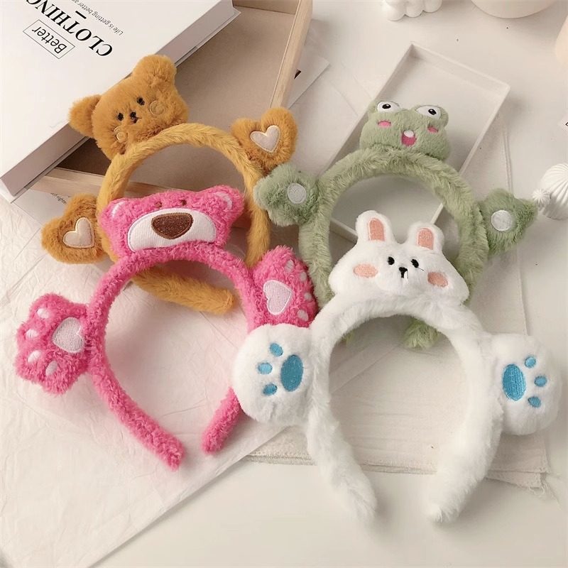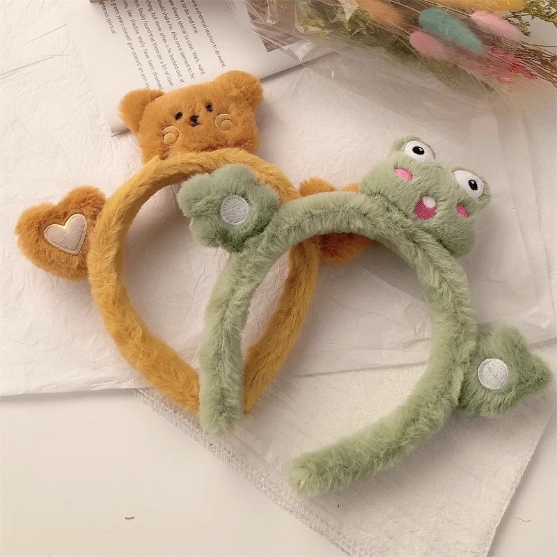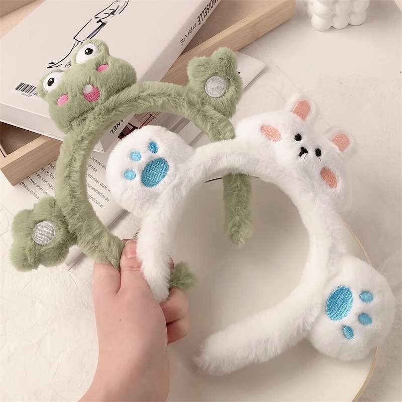 2023년 여성용 페이셜 마스크를 위한 새로운 입체 인형 세안 헤드밴드, 매우 귀여운 만화 토끼와 개구리 플러시 헤드밴드