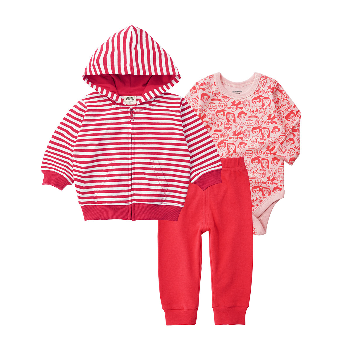 Minizone 유아 정장 라운드 넥 긴팔 가을, 겨울 바지 소년 만화 코트 소녀 삼각형 크롤링스토어 가기