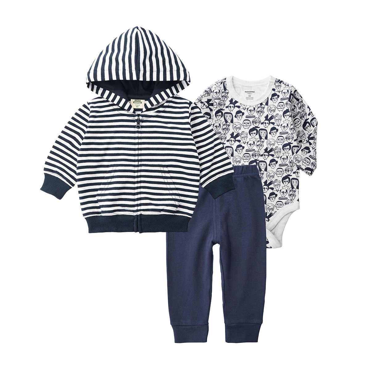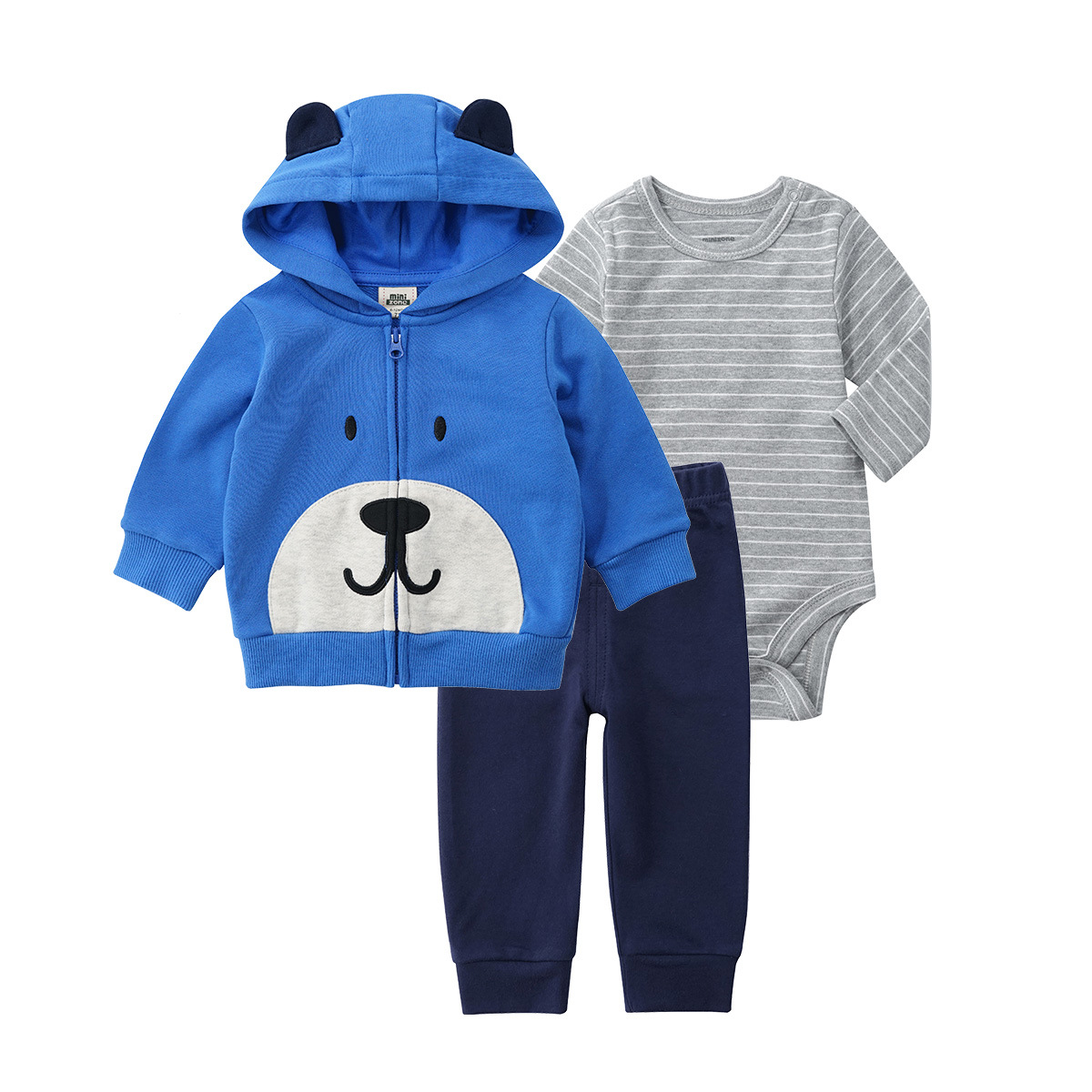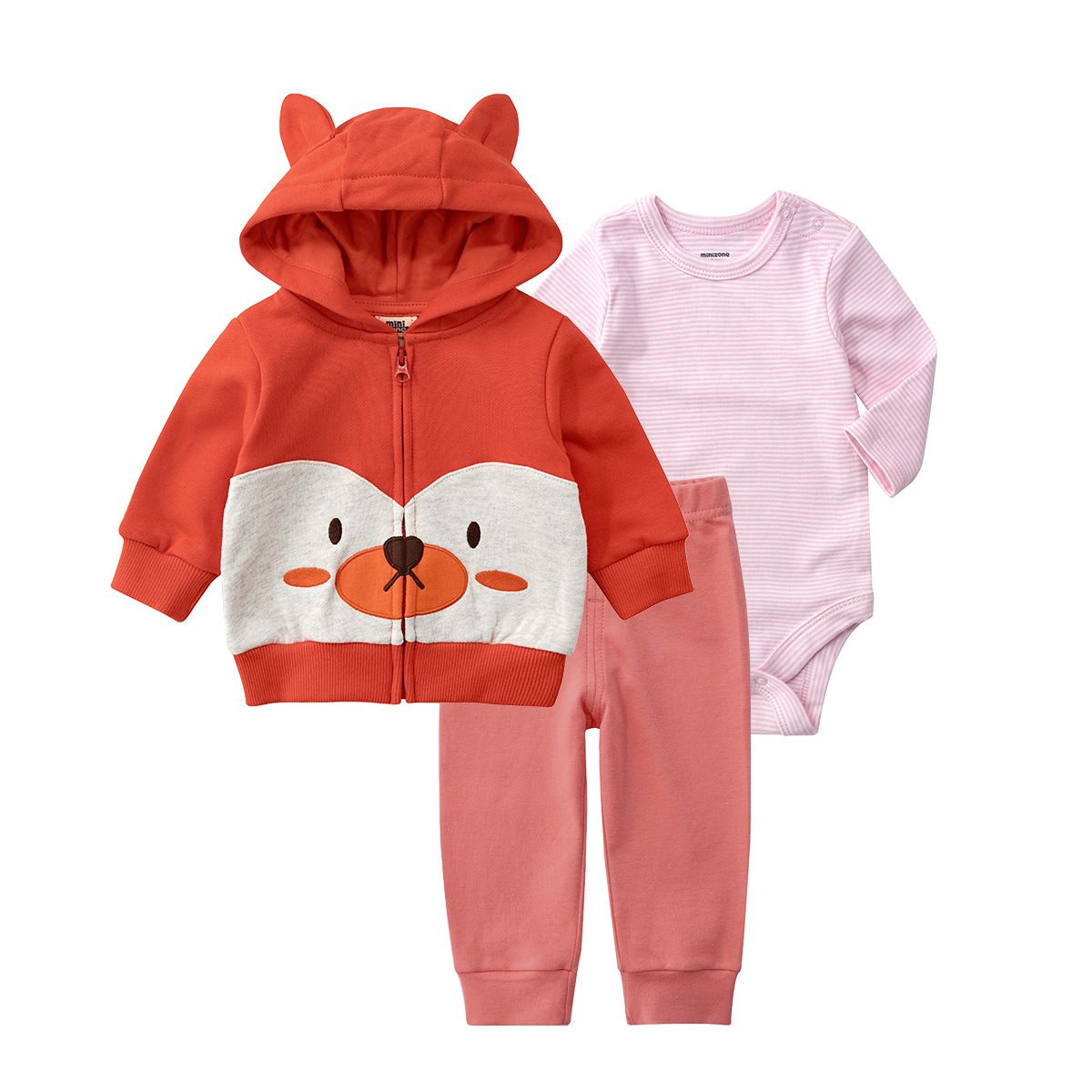 Minizone 유아 정장 라운드 넥 긴팔 가을, 겨울 바지 소년 만화 코트 소녀 삼각형 크롤링