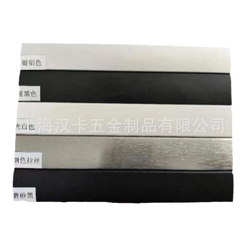 颜色:1:银铝色(氧化铝色)2:光白色3:哑黑色.4:磨砂黑色.5:钢拉丝色.6:黑色玻璃.7:白色玻璃.8:磨砂玻璃