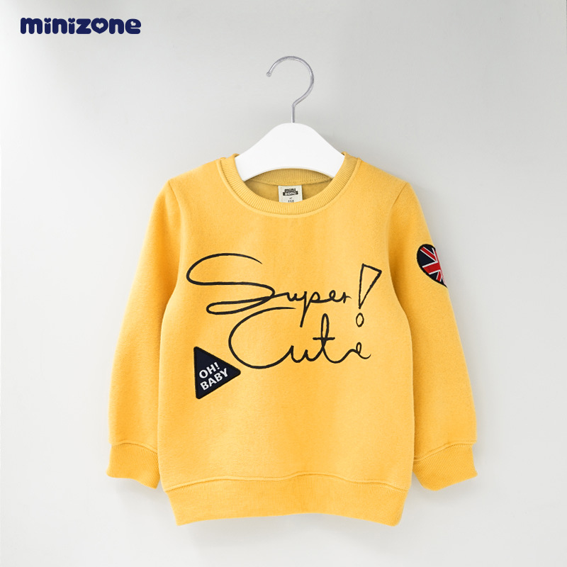 Minizon 유아 가을, 겨울 긴팔 운동복 소년 만화 라운드 넥 탑 소녀 따뜻한 재킷 조끼 클리어