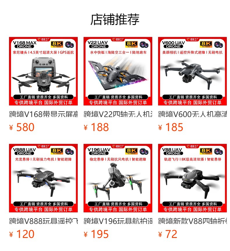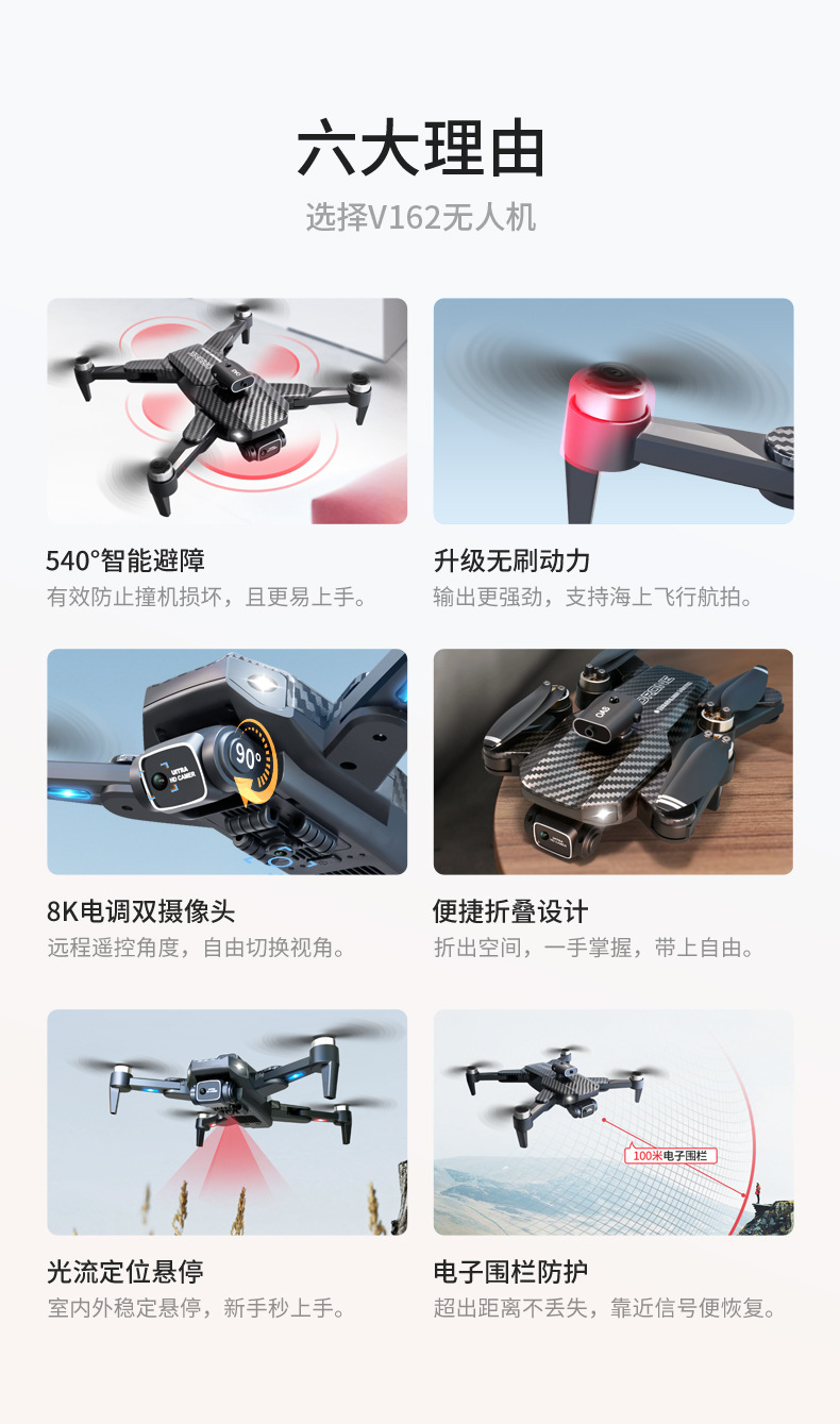국경 간 V162 브러시리스 고화질 8K 항공 사진 드론 장애물 회피 장난감 원격 제어 항공기 대외 무역 4축 새 항공기스토어 가기