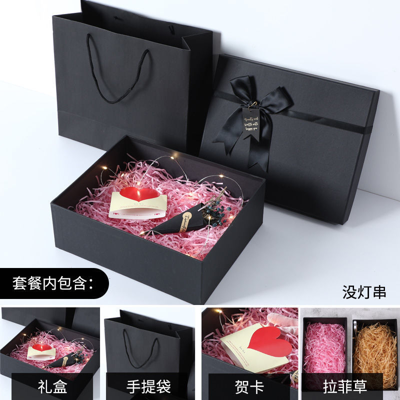 • 활 선물 상자 선물 가방 + 라피아 + 가벼운 끈
