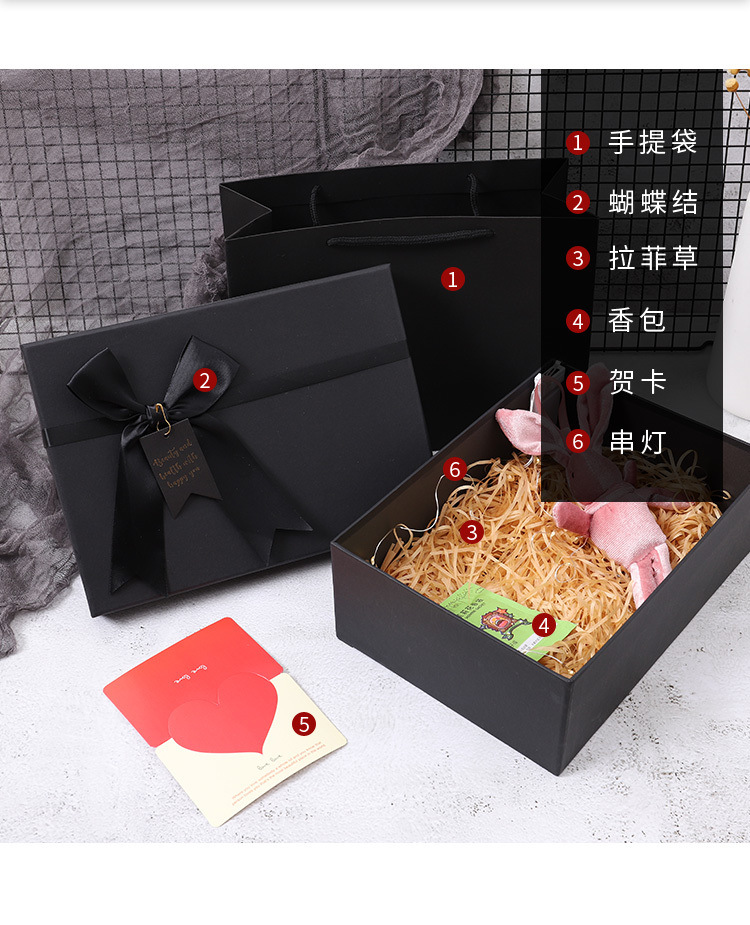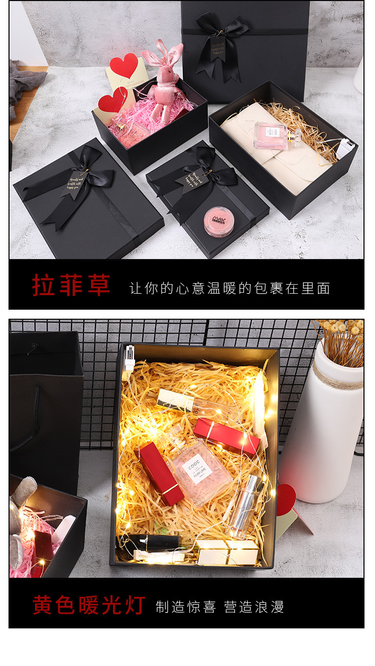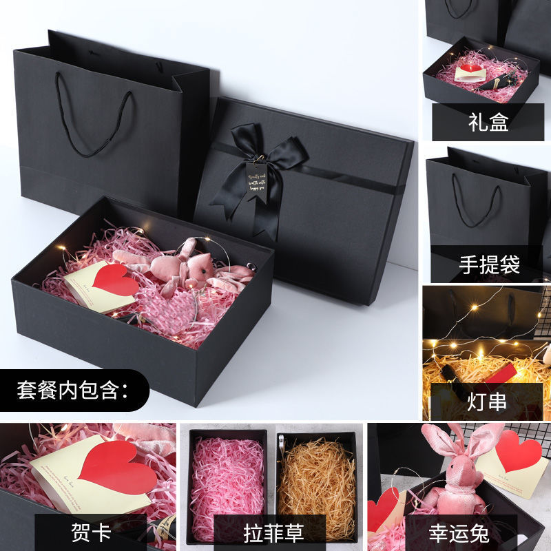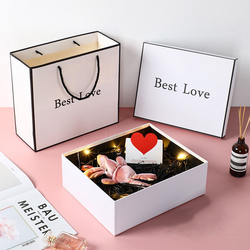 • 사랑 흰색 선물 상자 + 선물 가방 + 라피아 + 램프