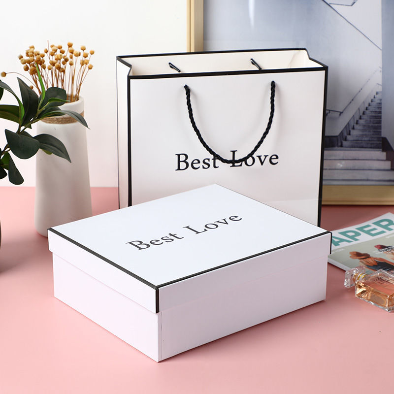 • 사랑 흰색 선물 상자 + 선물 가방 + 라피아