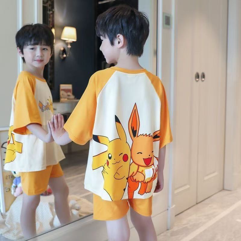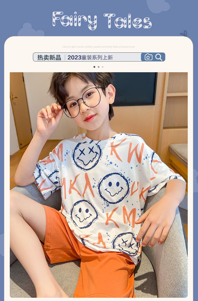 여름 소년과 어린이 잠옷, 반팔 반바지, 얇은 만화, 중대형 어린이 여름 소년 가정복, 야외에서 착용 가능