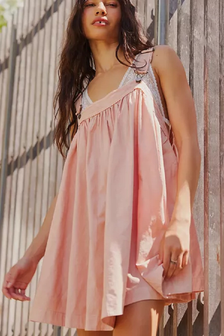 유럽과 미국의 국경 간 여름 새로운 여성 캐주얼 루즈 패션 솔리드 컬러 튜브 민소매 주름 스트랩 원피스