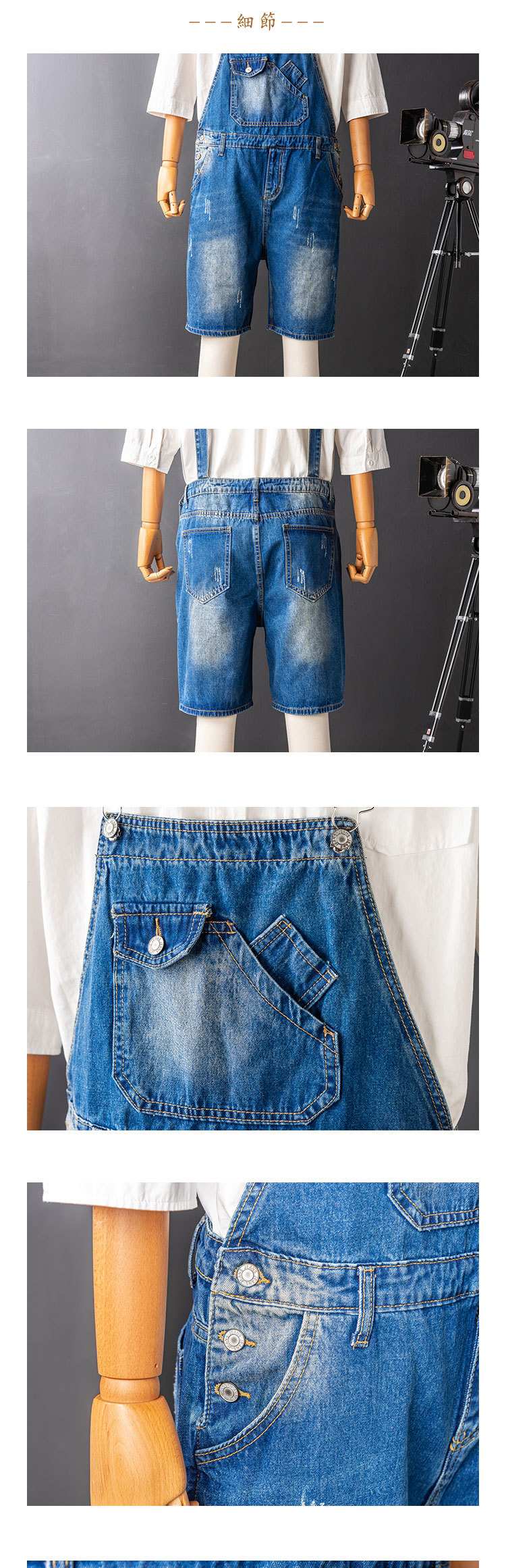 유럽과 미국의 트렌디한 브랜드 데님 멜빵 바지 남성 여름 찢어진 워싱 반바지 남성과 여성 청소년 연령 감소 원피스 멜빵 바지스토어 가기